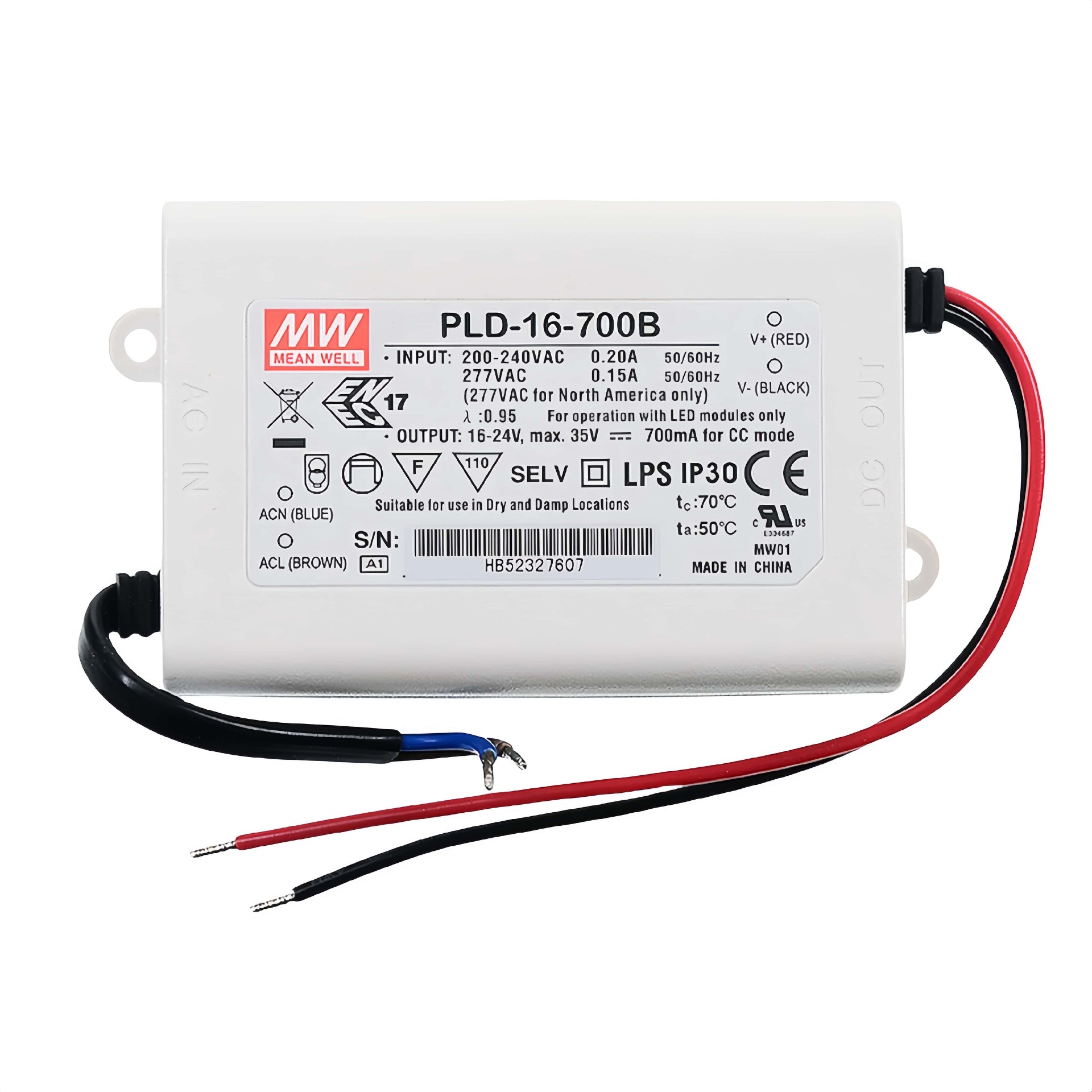 • 16W: 90~135VAC或180~295VAC