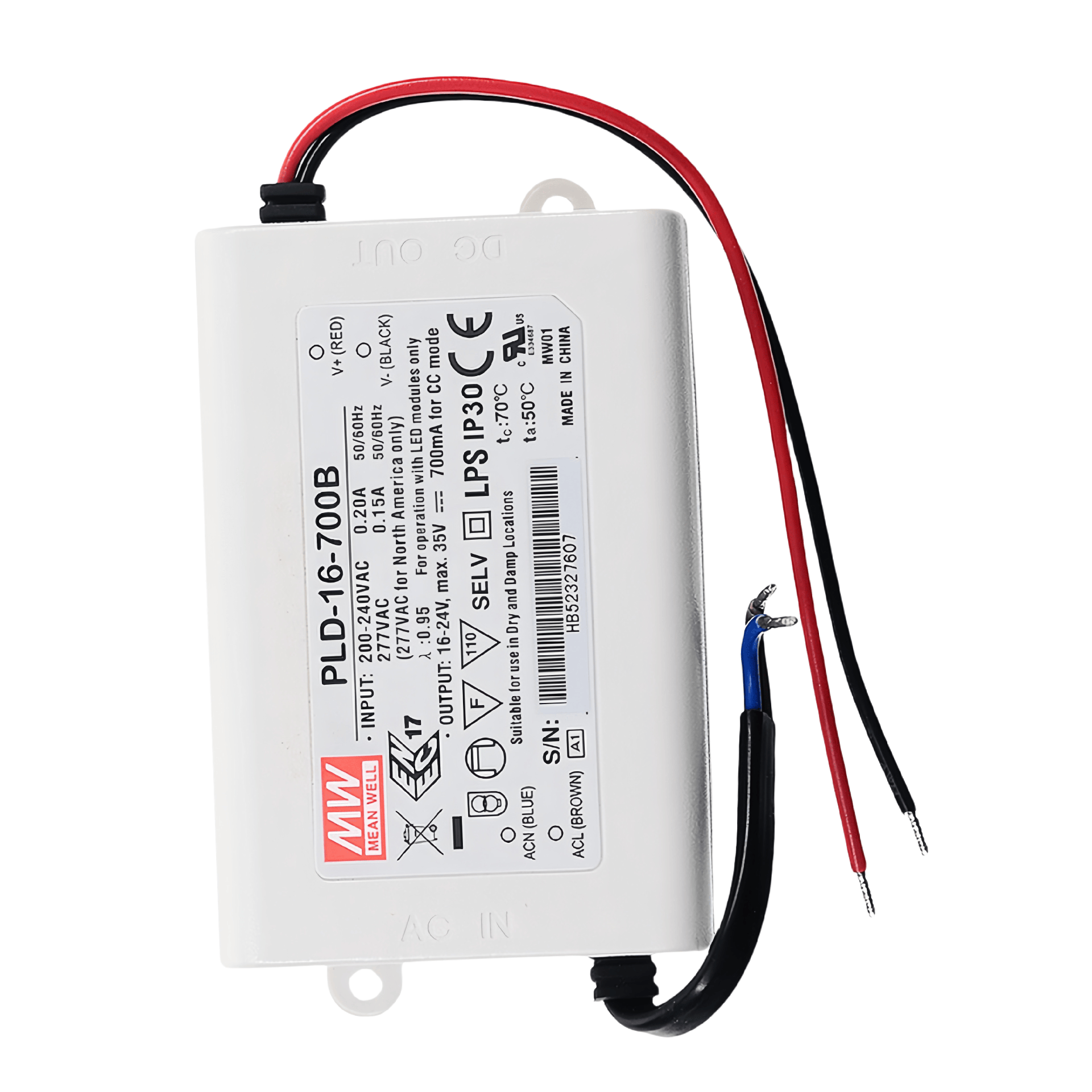 16/25W: 90~135VAC或180~295VAC40/60W: 180~295VAC