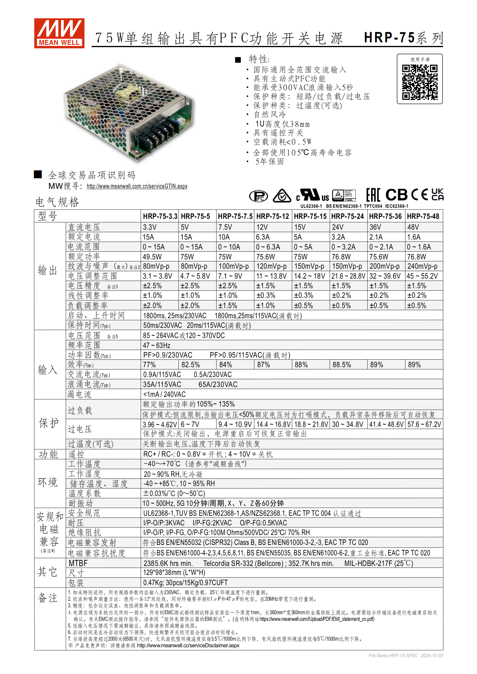 問題 1:HRP-75 系列開關電源的核心適配場景及關鍵優(yōu)勢是什么?