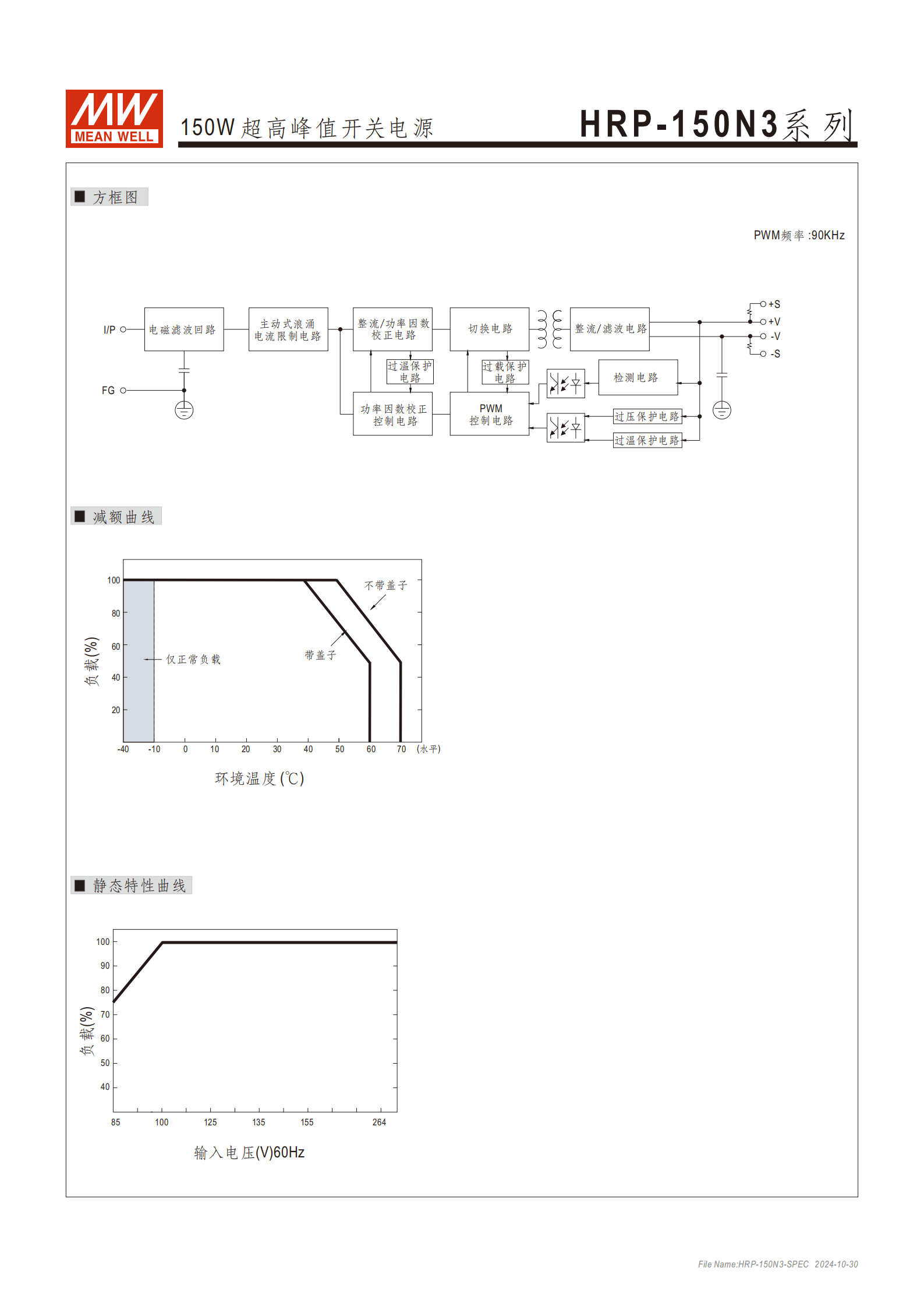 | HRP-150N3-48 | 48V | 3.3A | 158.4W | 240mVp-p | 40.8~55.2V |