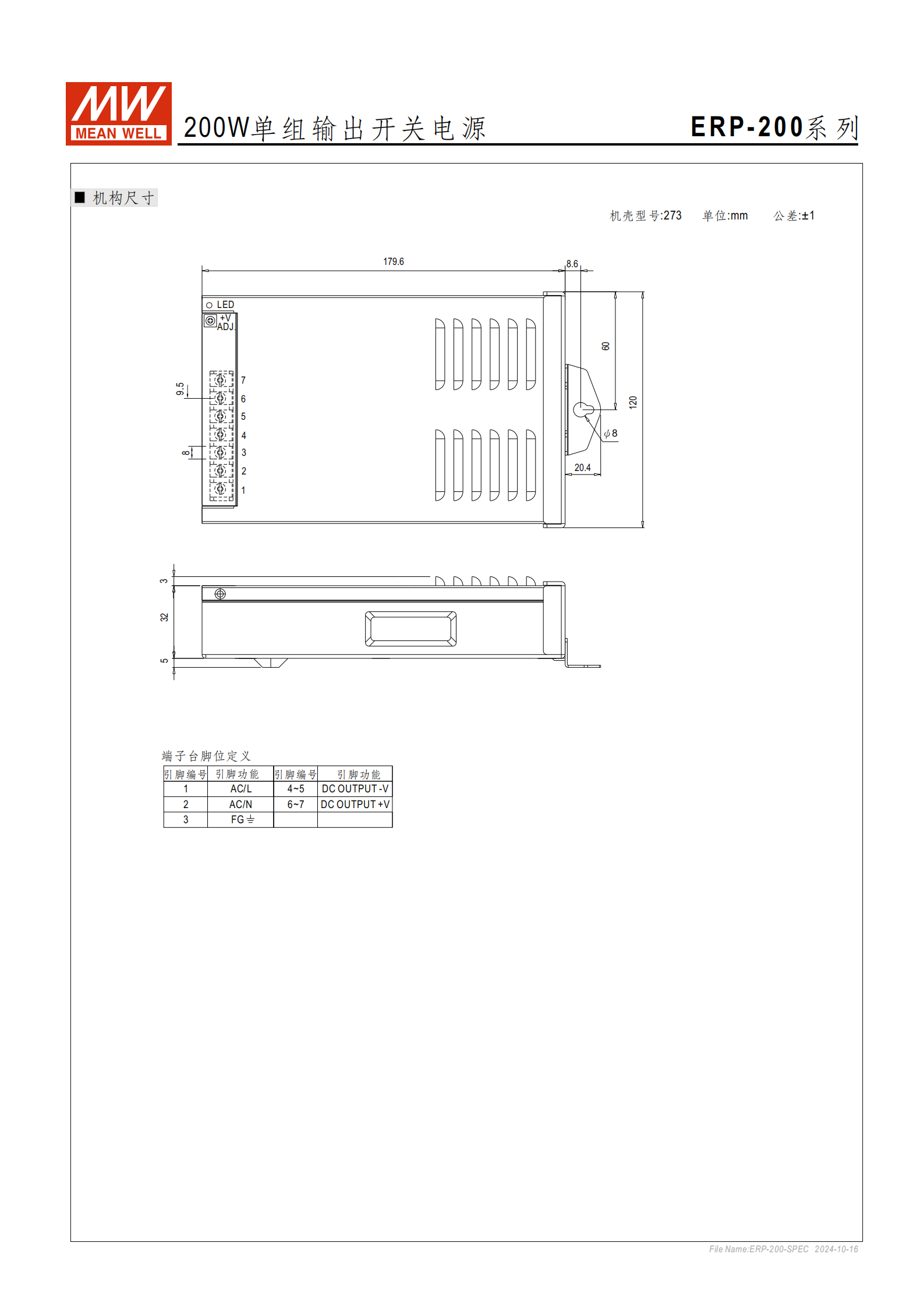 品牌與系列:MEAN WELL(明緯)ERP-200 系列