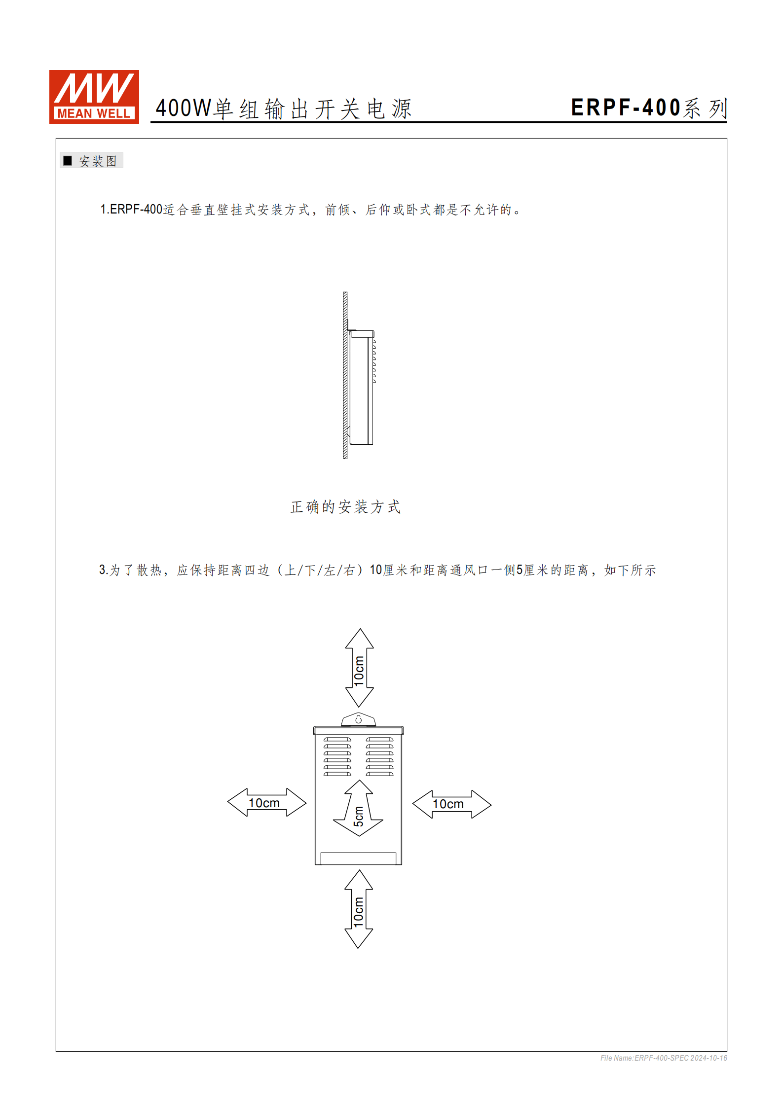| ERPF-400-24 | 24V | 16.7A | 400.8W | 150mVp-p | 90% |