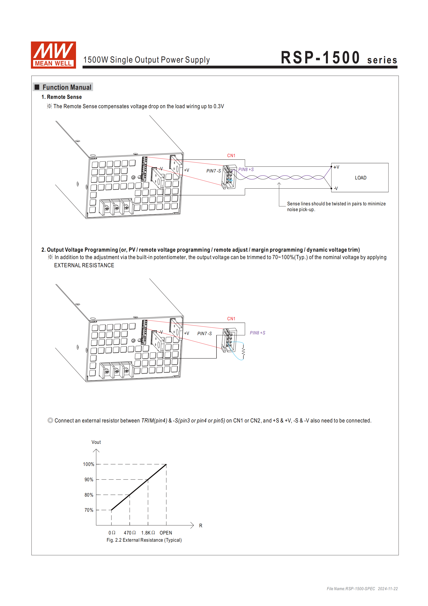 | RSP-1500-12 | 10~13.5V | RSP-1500-27 | 24~30V |