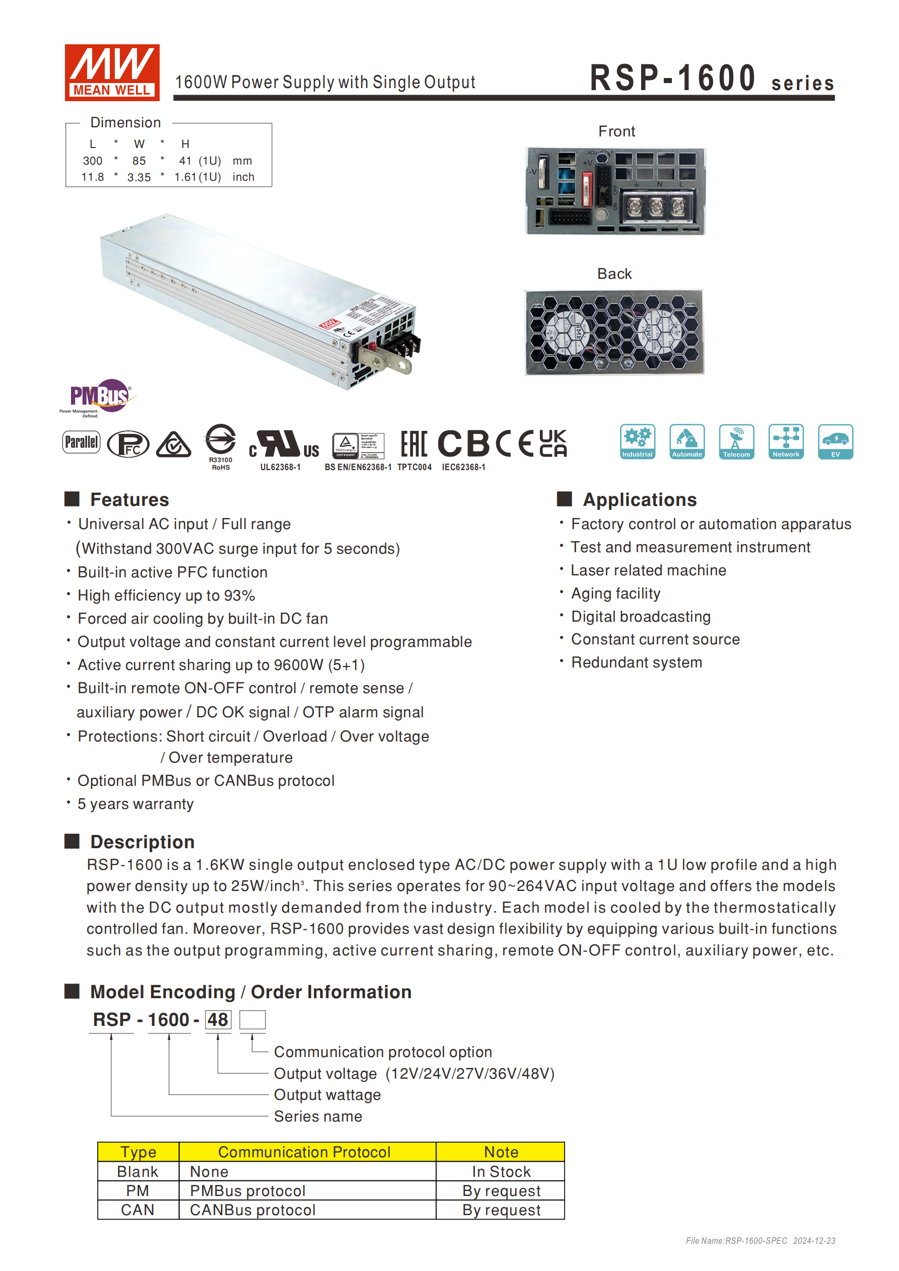 問題 3:RSP-1600 系列電源具備哪些保護(hù)功能?當(dāng)出現(xiàn)過負(fù)載或過溫度異常時(shí),保護(hù)機(jī)制如何運(yùn)作?