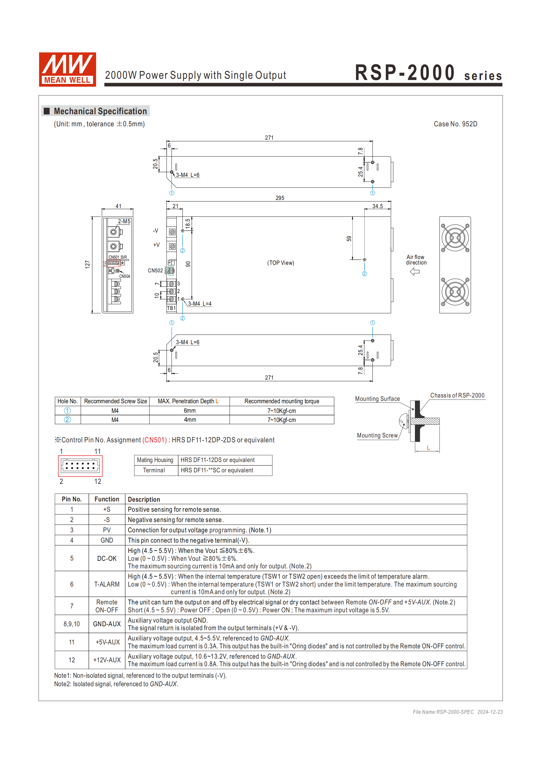 | RSP-2000-24 | 24V | 80A | 1920W |