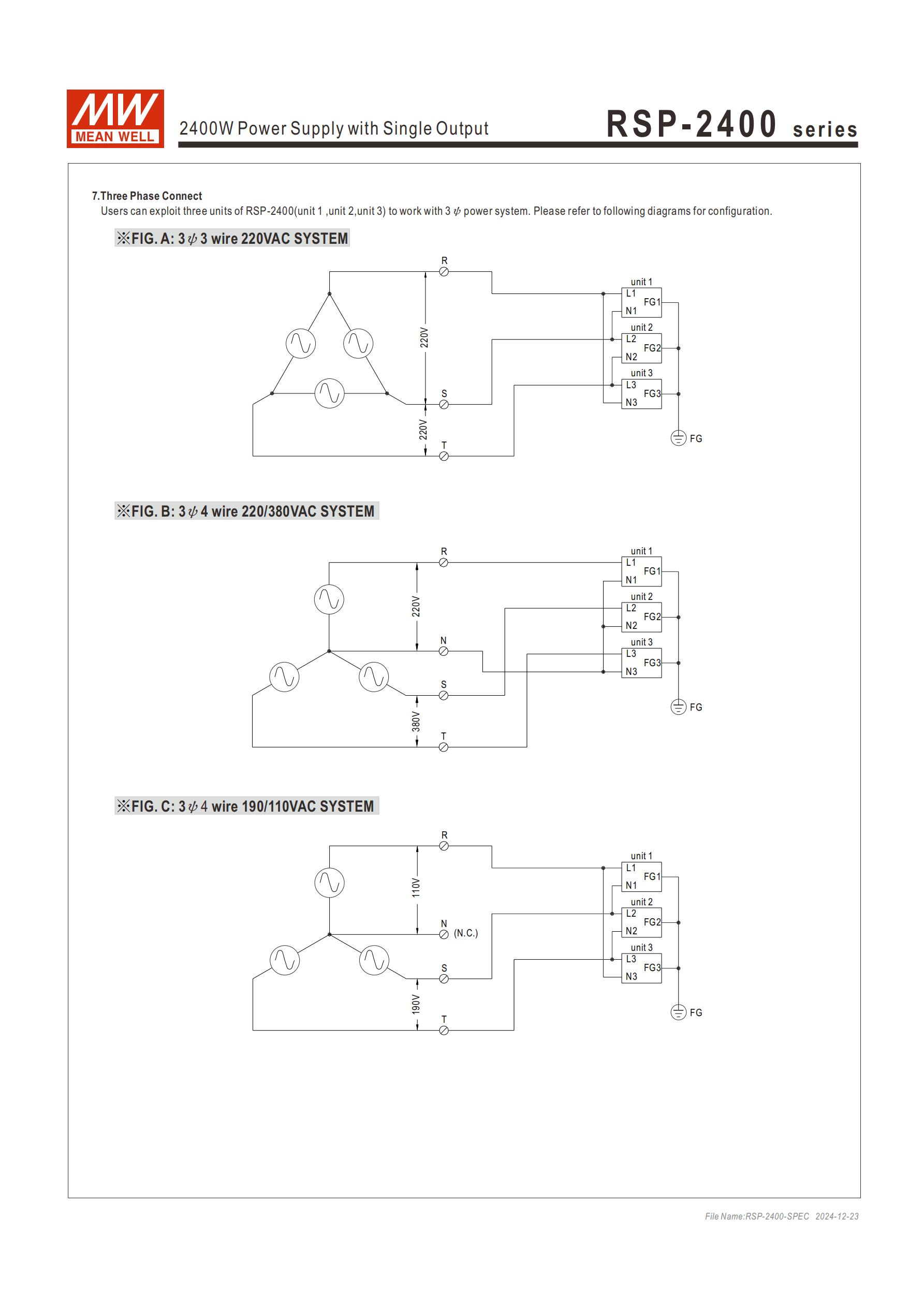需按對應(yīng)接線圖連接各電源單元的 L、N、FG 端子