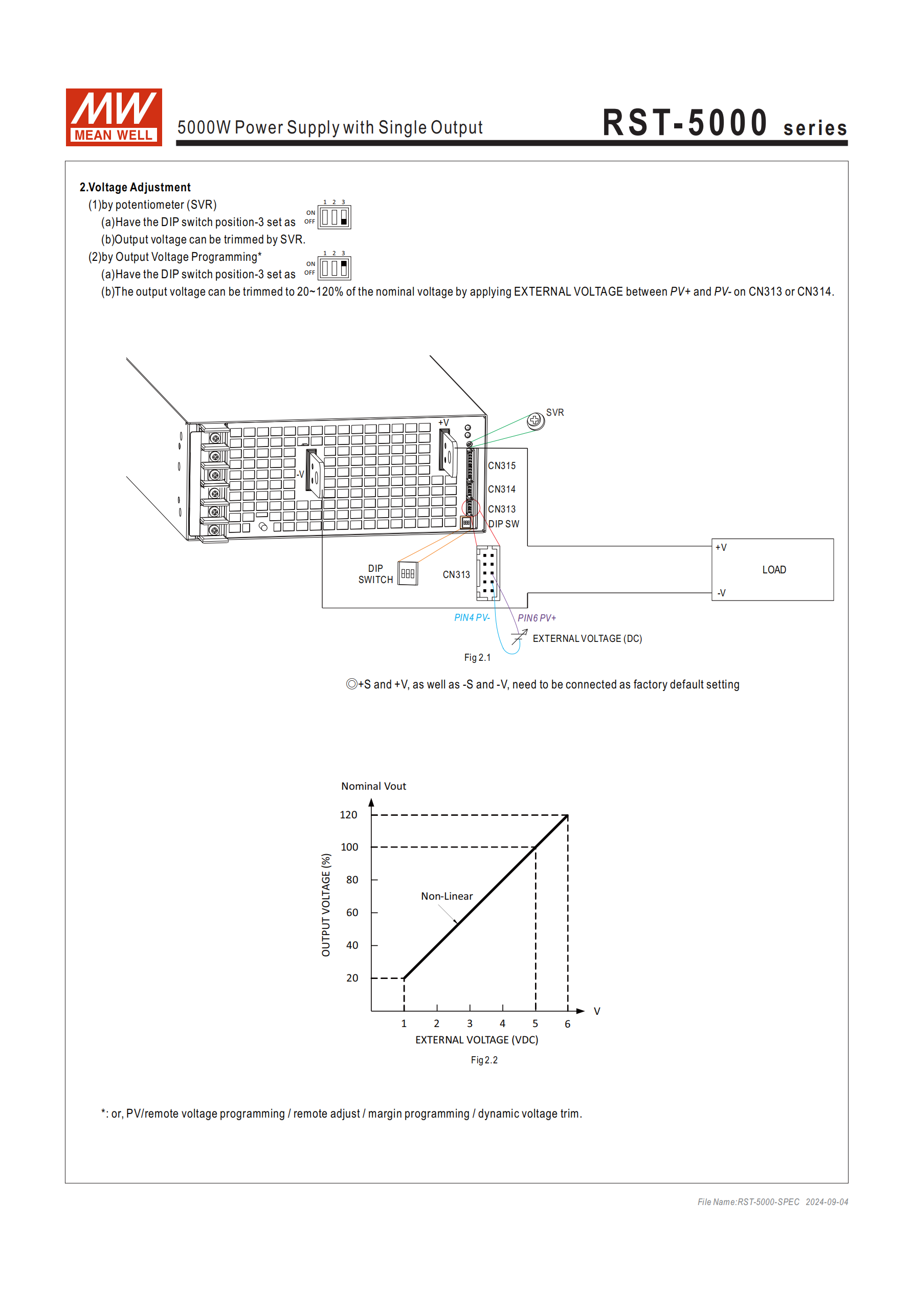 輸出電壓調(diào)整:兩種方式 ——① 內(nèi)部電位器(SVR);② 外部電壓(CN313/CN314 的 PV + 與 PV - 間,0~4VDC 對應(yīng) 20~120% 額定電壓)