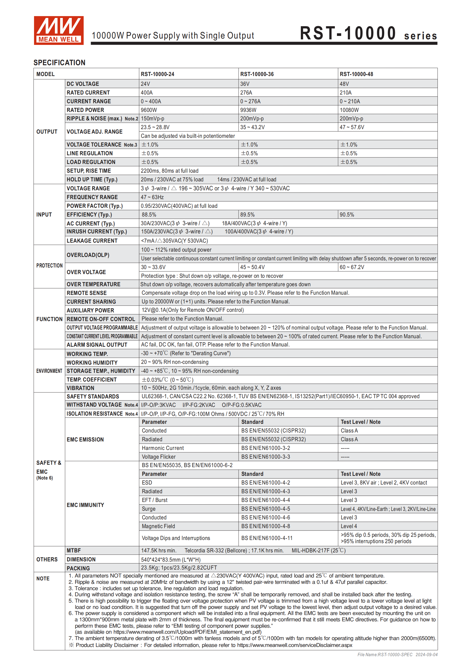 品牌與型號(hào):MEAN WELL(明緯)RST-10000 系列