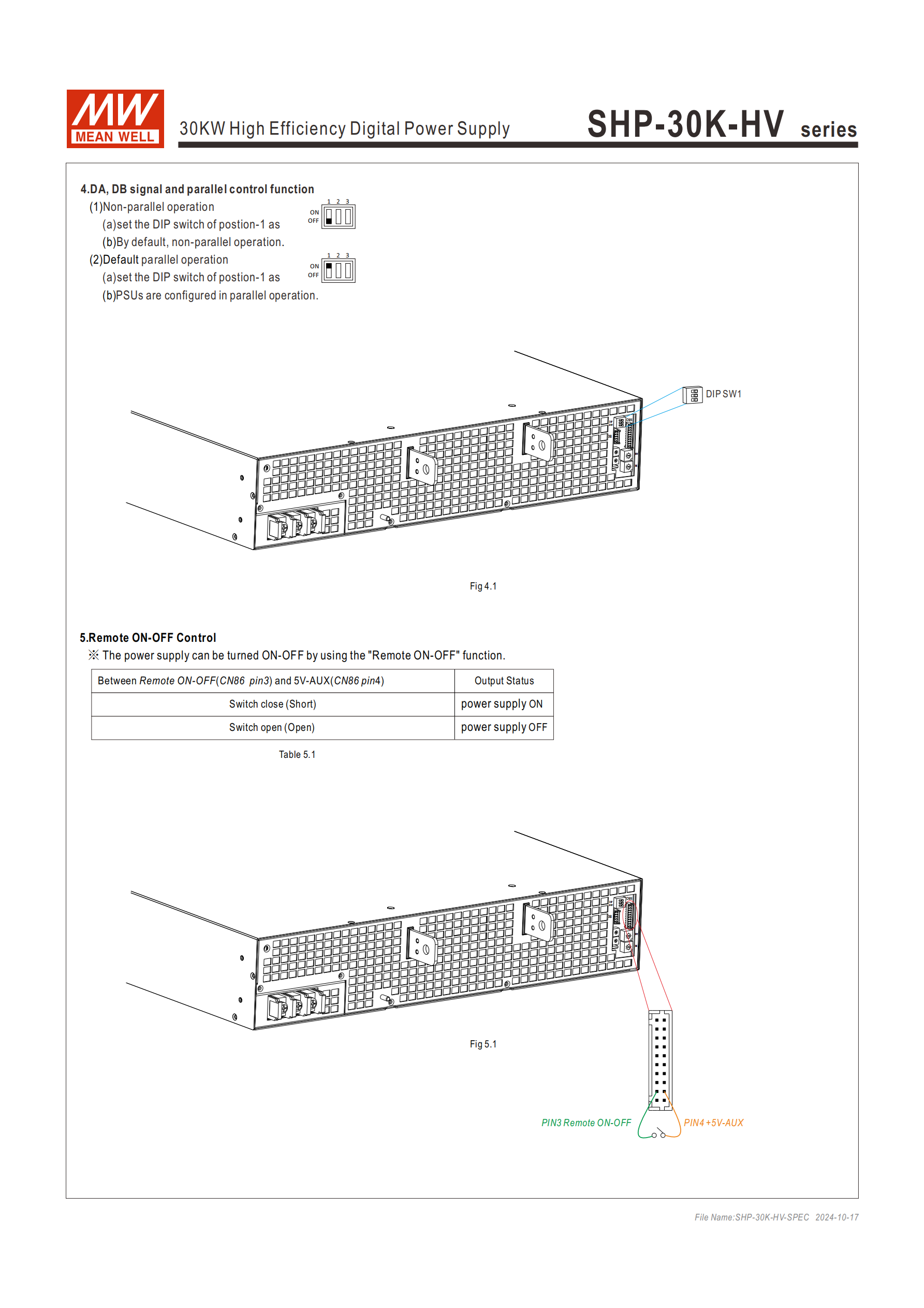 需按手冊配置 CN53 接口與 DIP 開關(如 2 臺并聯(lián)需連接 PSU1 與 PSU2 的 CN53,DIP-SW PIN1 設為 ON)。