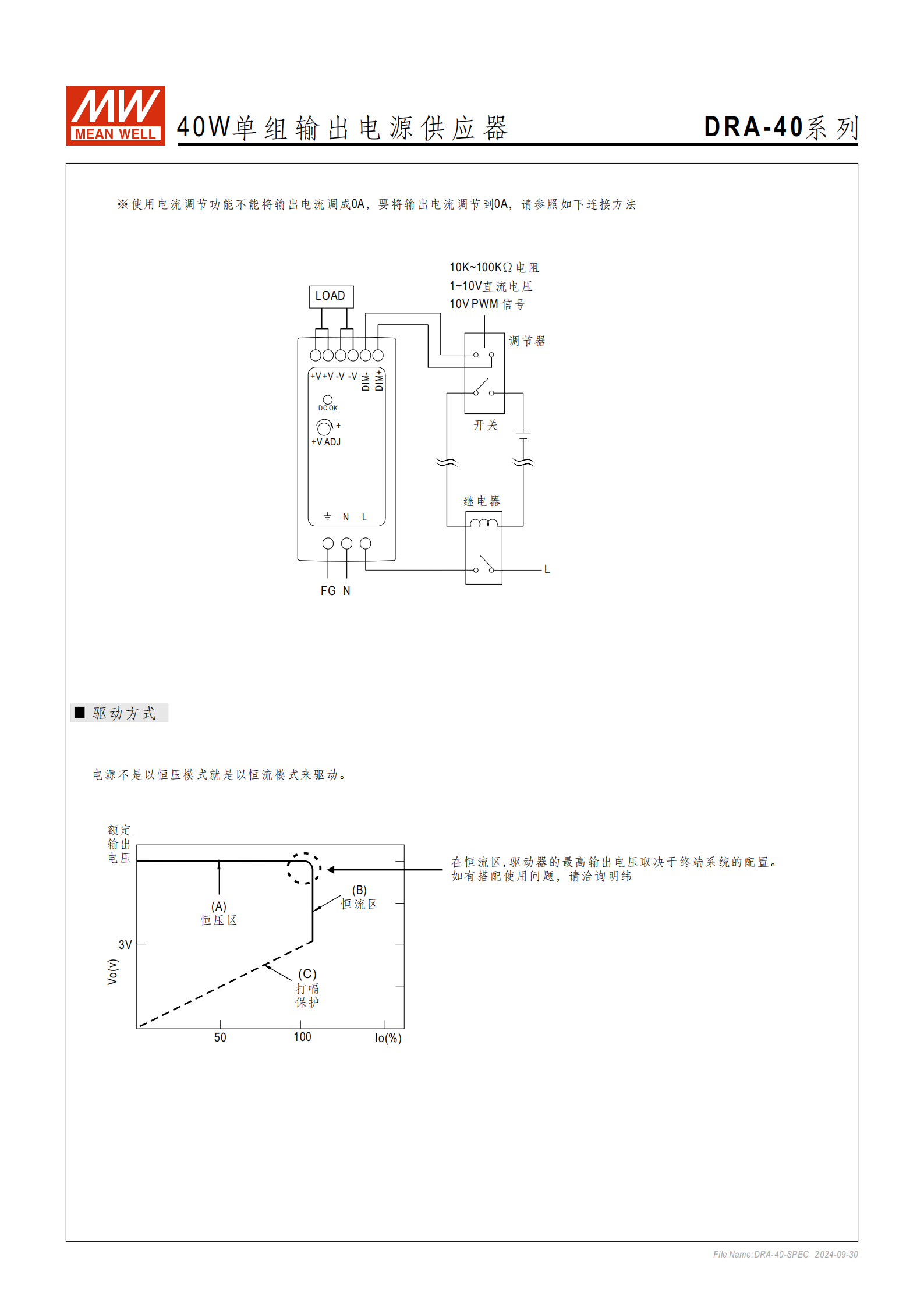 問題 1:DRA-40 系列電源有哪些輸出電流調(diào)整方式?不同方式下如何實現(xiàn)額定電流 10%~100% 的調(diào)節(jié)?