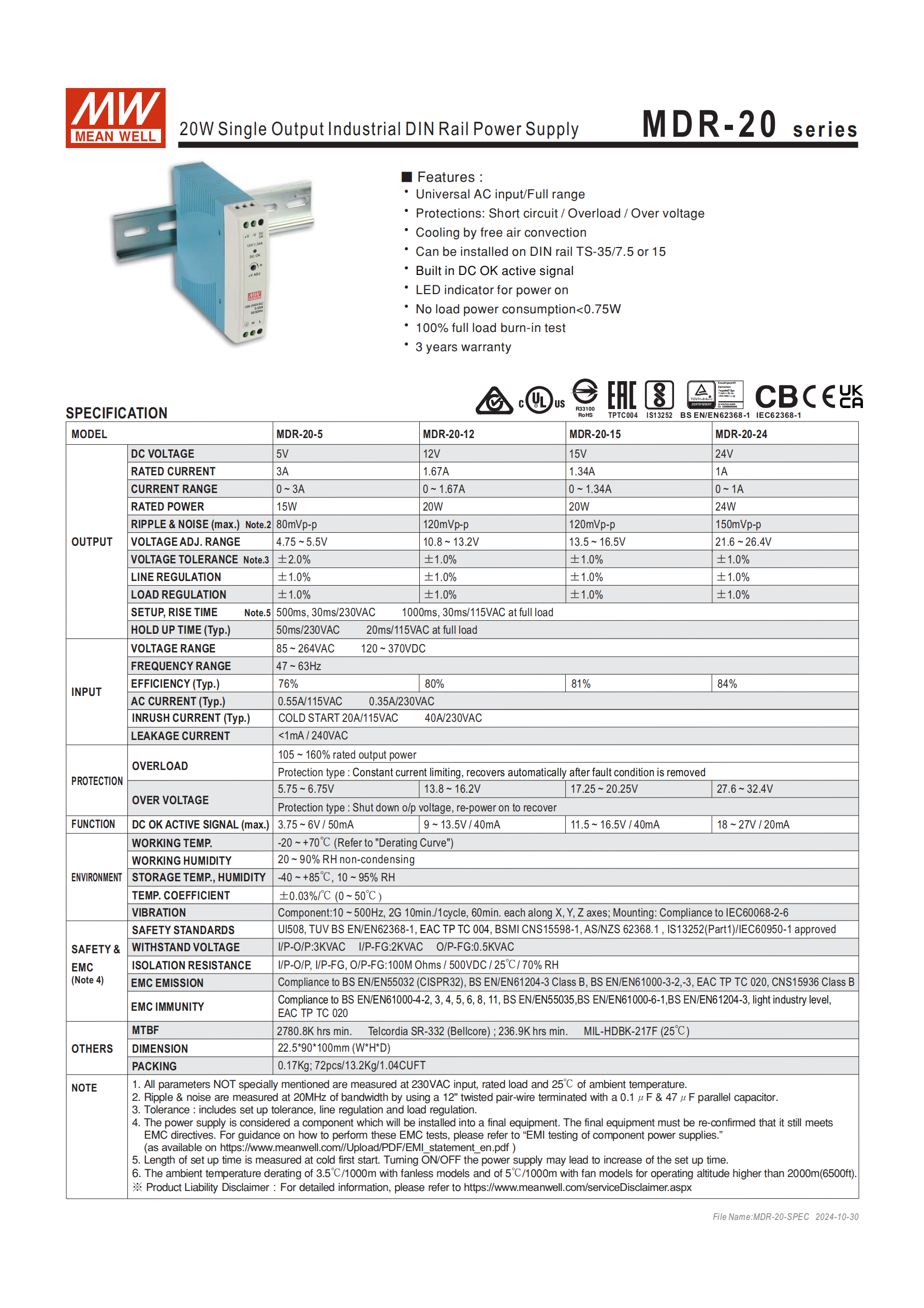 | MDR-20-12 | 12V | 1.67A | 20W |