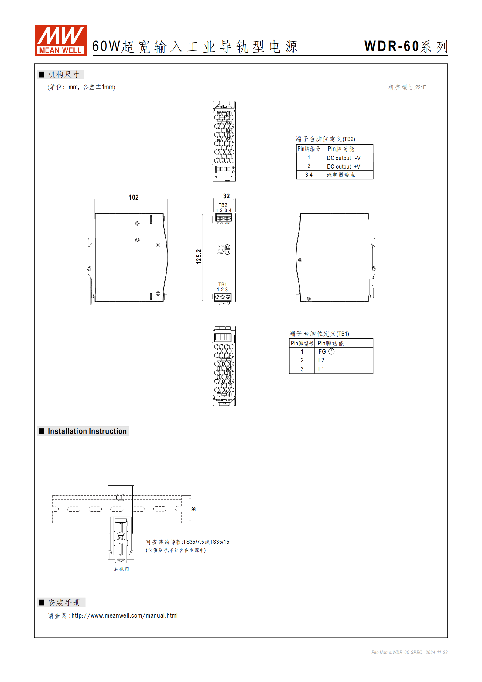 | WDR-60-48 | 48V | 1.25A | 60W | 高壓低電流設備(如通信模塊、大功率執(zhí)行器) |