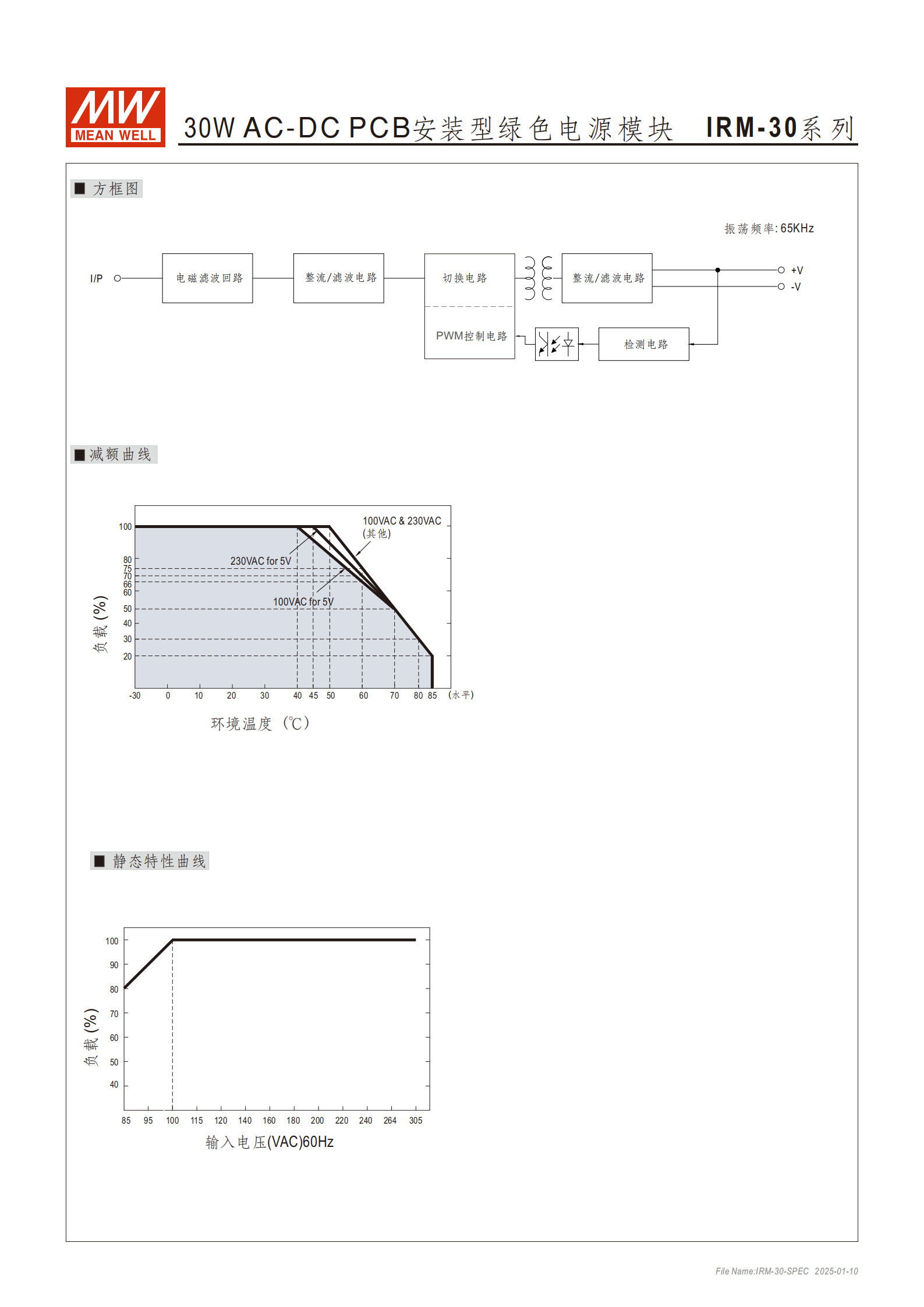 | IRM-30-5 | 5V | 6A | 0~6A | 30W | 120mVp-p |