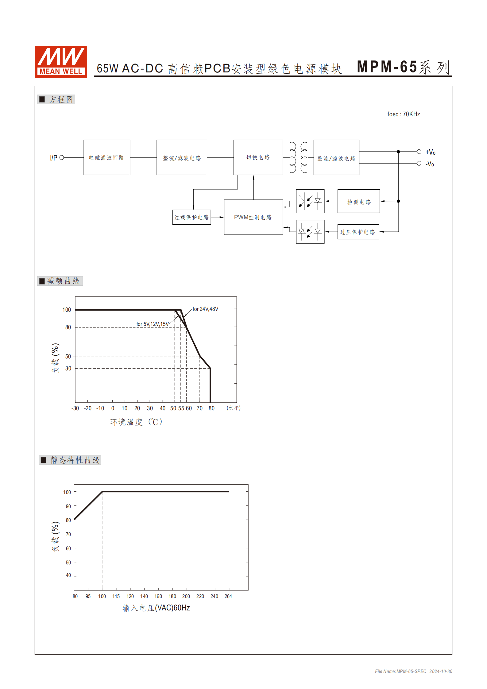 | 輸出 | 直流電壓規(guī)格 | MPM-65-5□:5V;MPM-65-15□:15V;MPM-65-24□:24V;MPM-65-48□:48V |