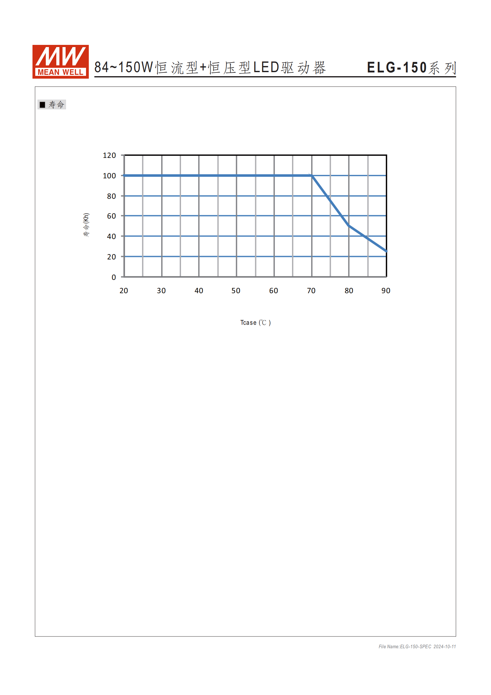 明緯 ELG-150 系列為84~150W功率段的恒流 + 恒壓雙模式LED 交流變直流驅動器,主打戶內戶外通用,金屬外殼接地設計,無風扇自然風冷散熱,核心適用于 LED 專業(yè)照明場景,提供5 年保固,正常使用下壽命 **>50000 小時 **。