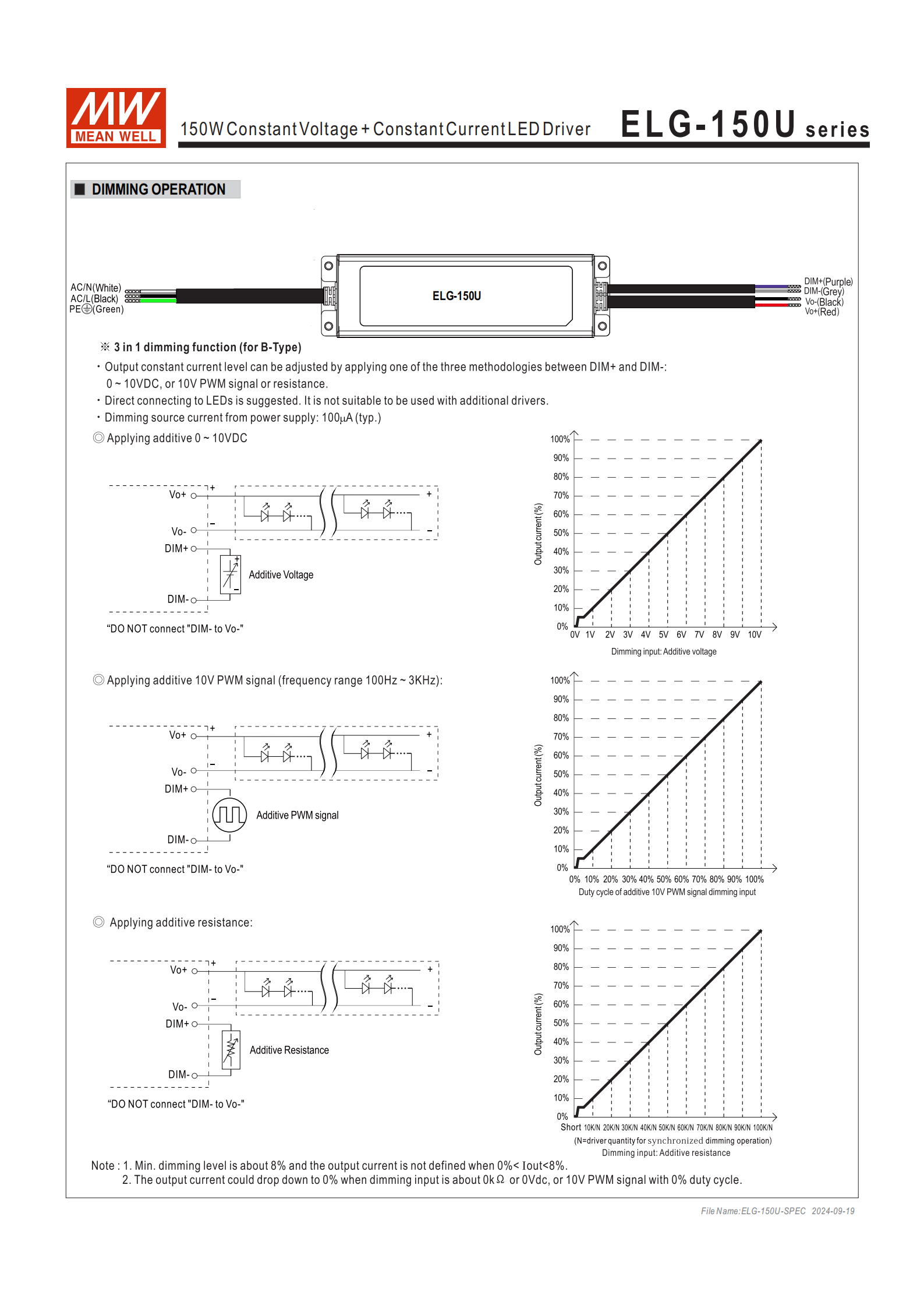 問(wèn)題 2(電氣適配):ELG-150U 系列各電壓版本的額定輸出參數(shù)及 A 型可調(diào)范圍分別是多少,核心適配多大功率的 LED 負(fù)載?