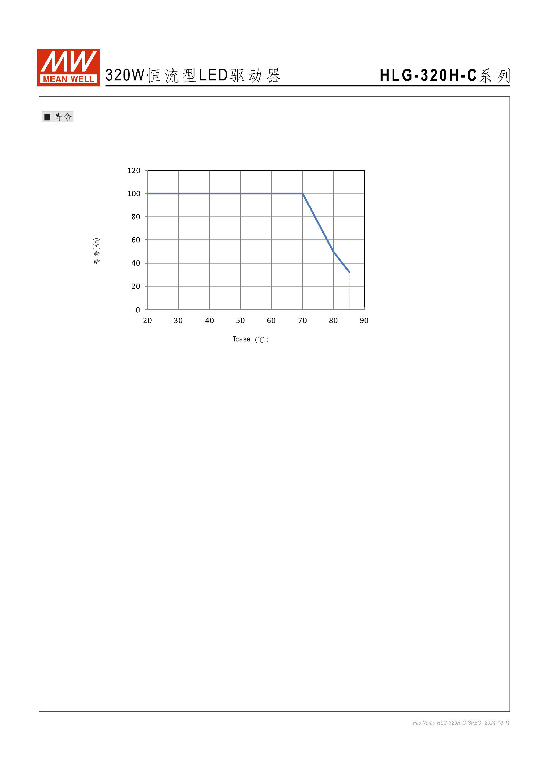 壽命與保固:外殼溫度 Tc<75℃時(shí)工作壽命 > 62000 小時(shí),官方提供7 年保固;