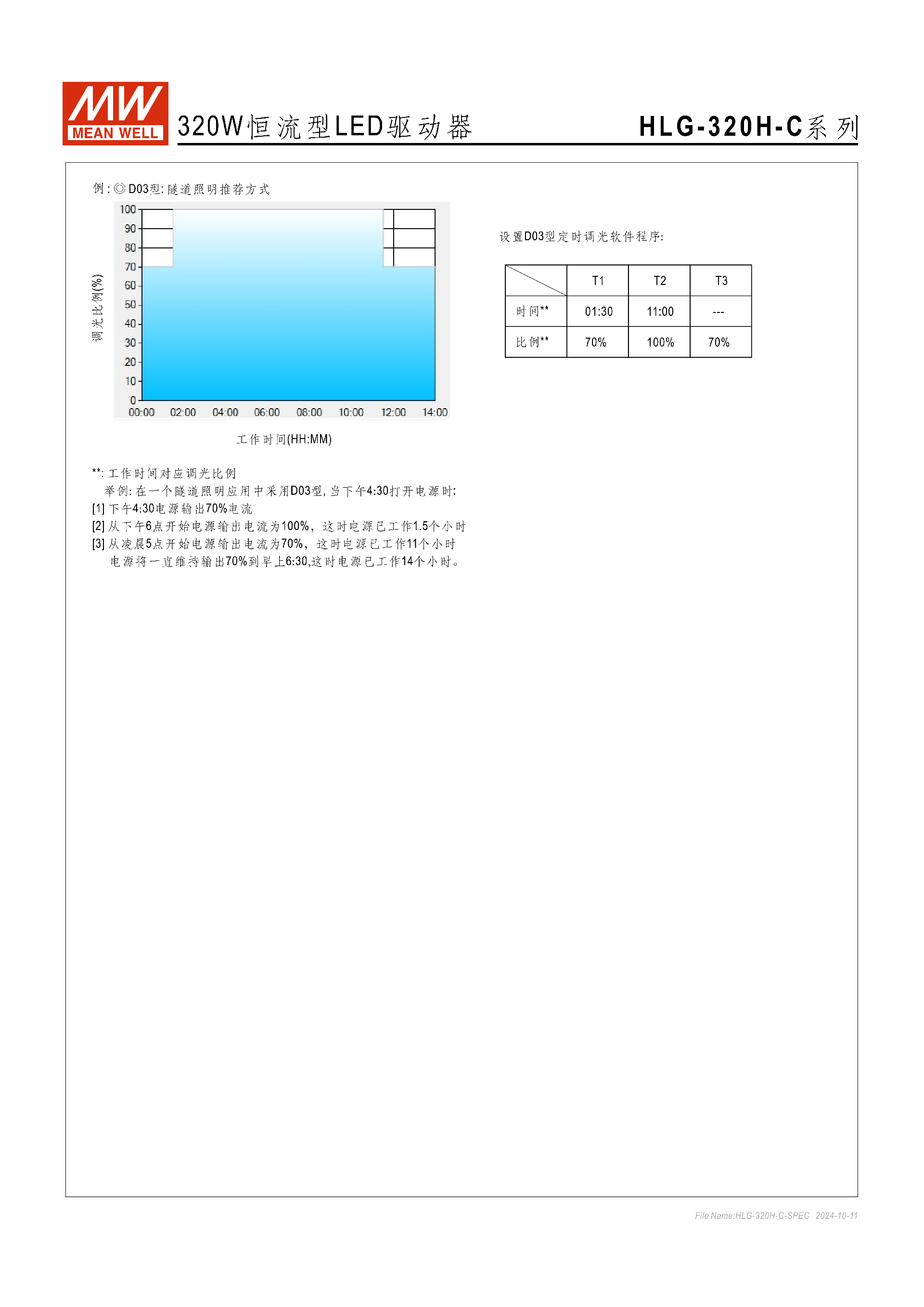 標(biāo)配模式:D01(住宅照明)、D02(街道照明)、D03(隧道照明),各模式按工作時(shí)長(zhǎng)階梯式調(diào)整調(diào)光比例。