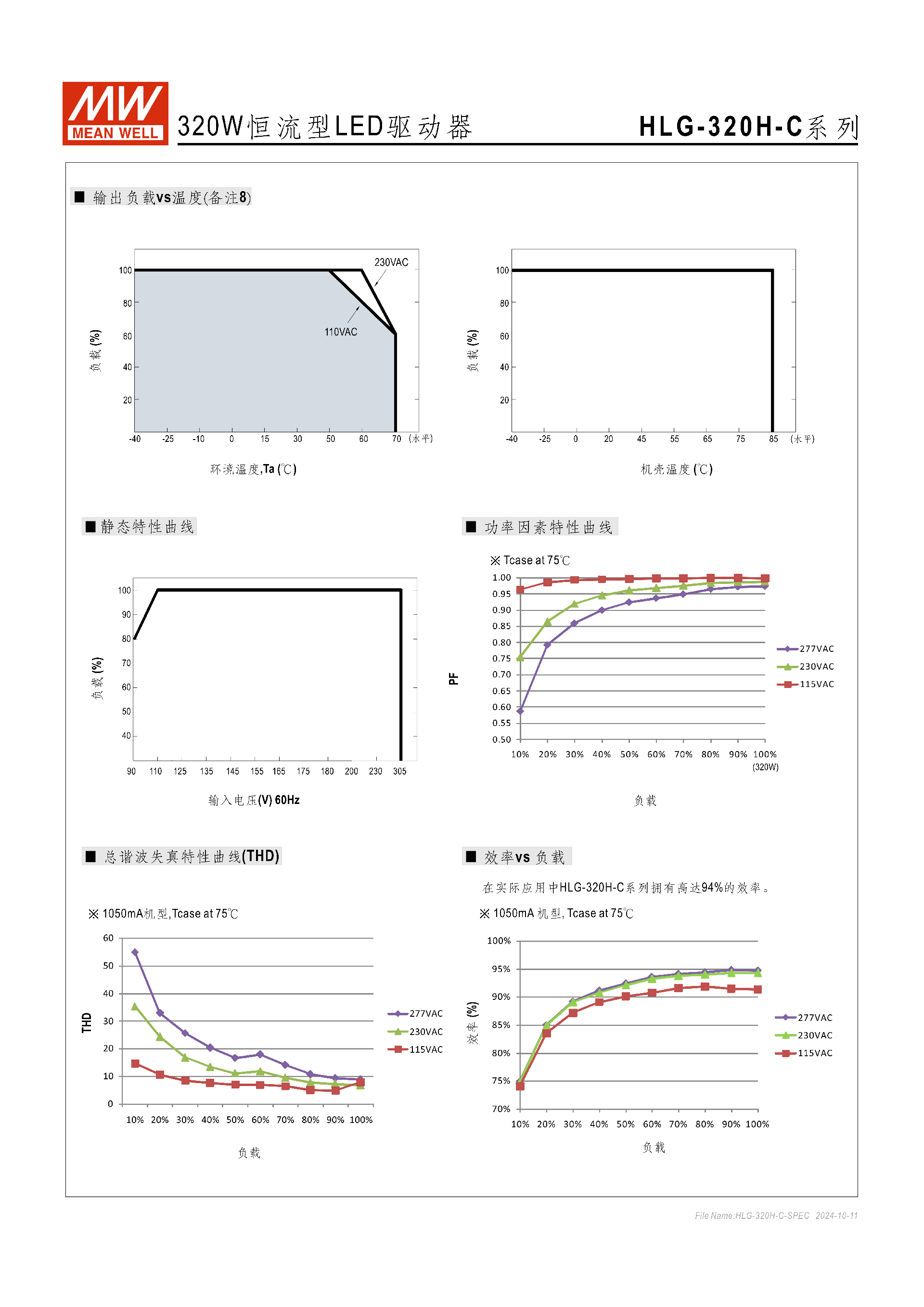 功率因數(shù)(滿載):PF≥0.98/115VAC、PF≥0.95/230VAC、PF≥0.92/277VAC;