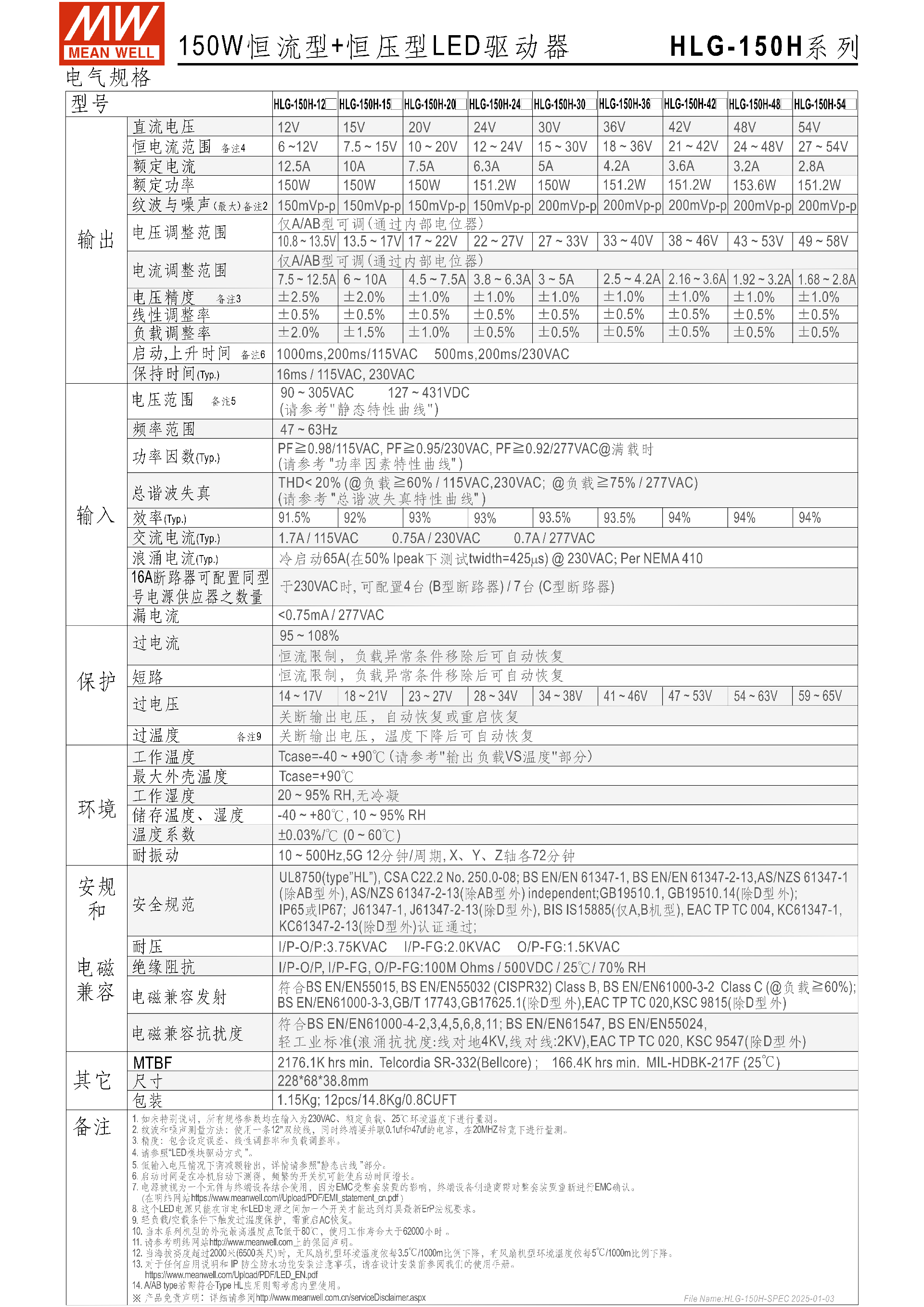 HLG-150H-12B、HLG-150H-20B、HLG-150H-24B、HLG-150H-54B
