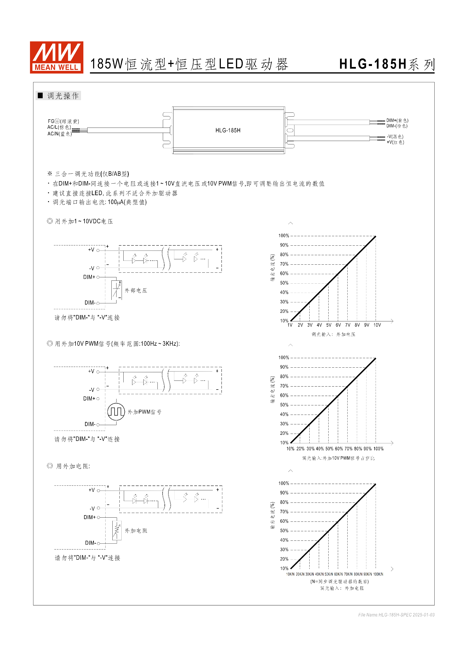 問(wèn)題 2(調(diào)光操作):HLG-185H 系列的三合一調(diào)光功能僅哪些型號(hào)支持,具體有哪幾種調(diào)光方式,操作時(shí)有什么禁忌?