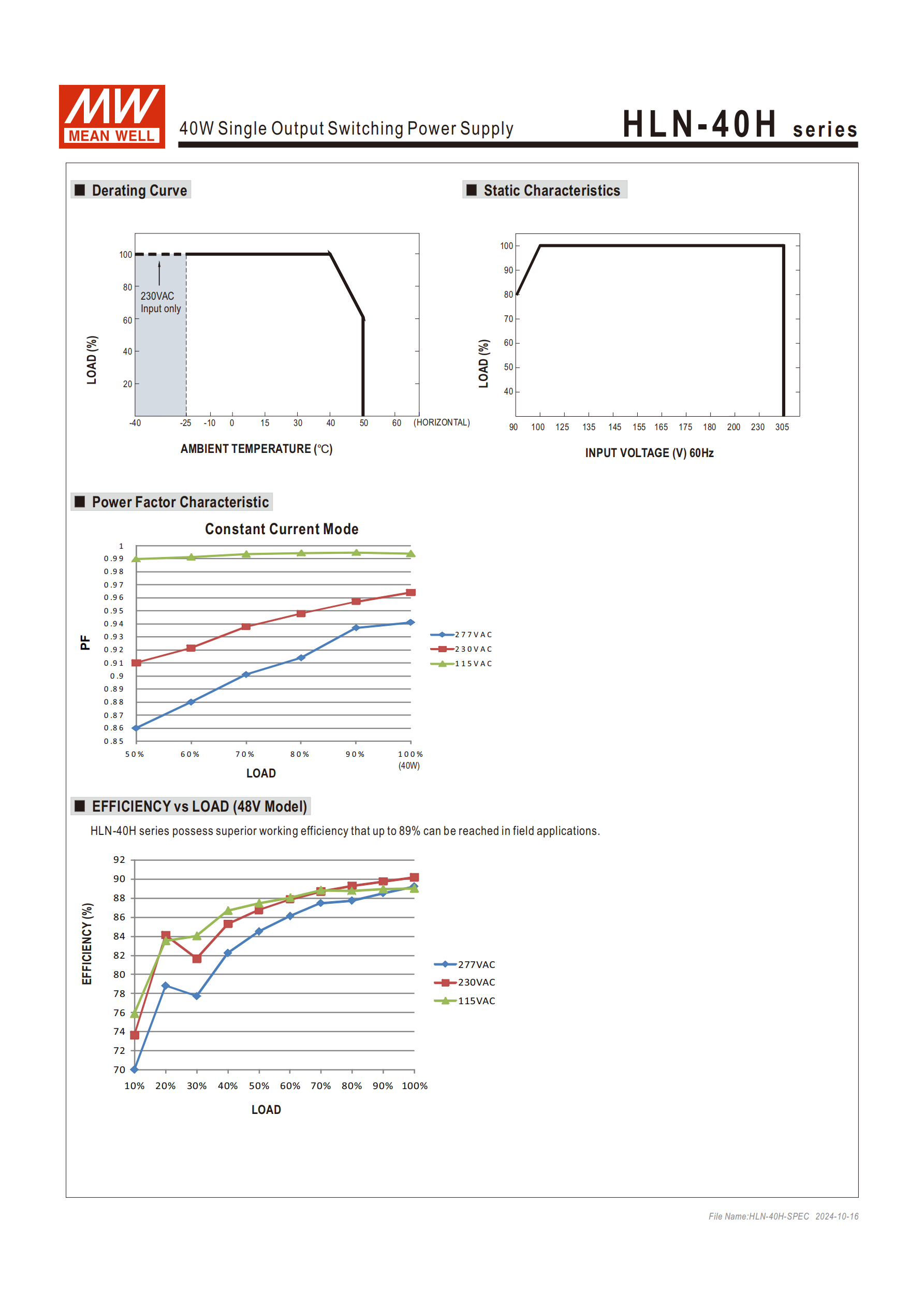 2. 功率因數(shù):滿載時115VAC>0.98、230VAC>0.95、277VAC>0.92,負(fù)載≥60%(115/230VAC)/75%(277VAC)時 THD<20%;