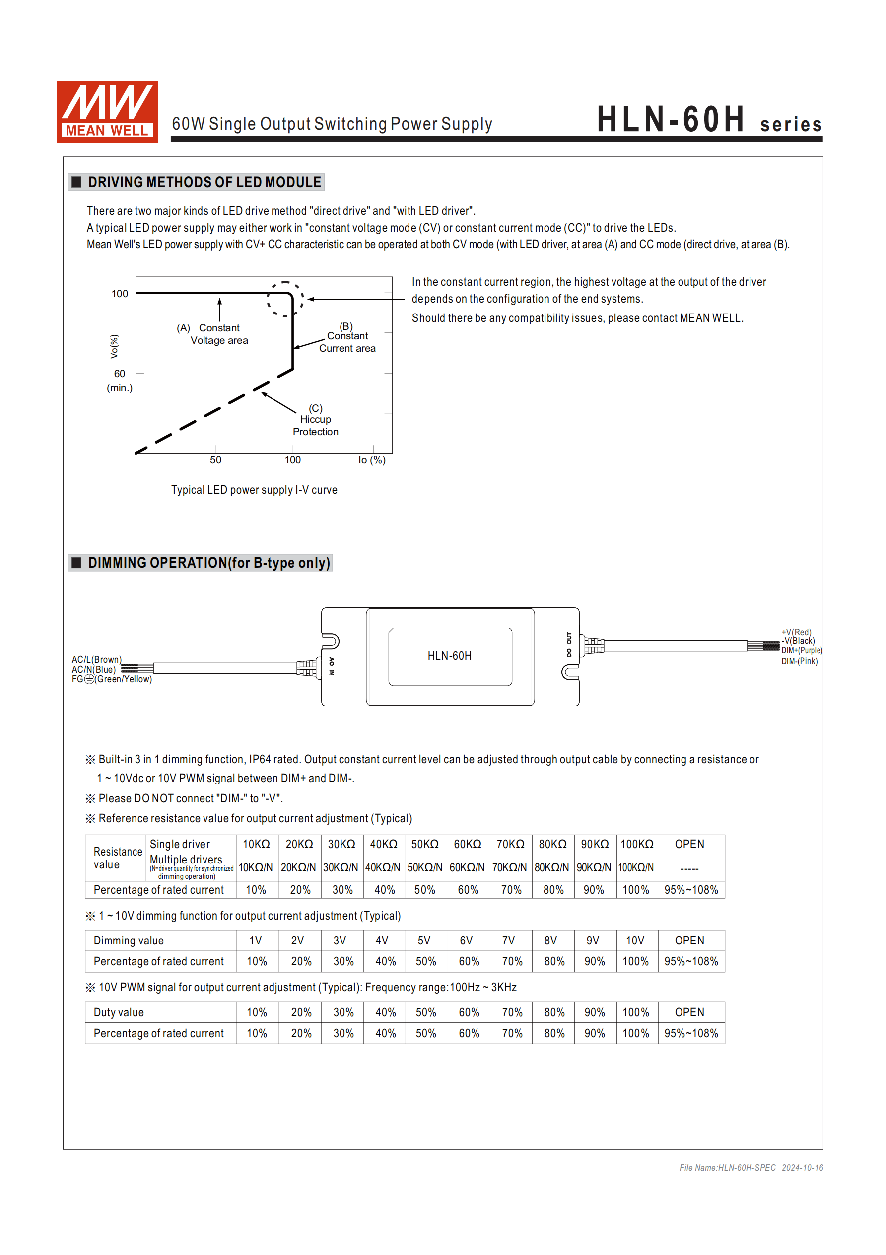 | HLN-60H-48 | 48 | 1.3 | 62.4 | 300 | ±1.0% | 90 |