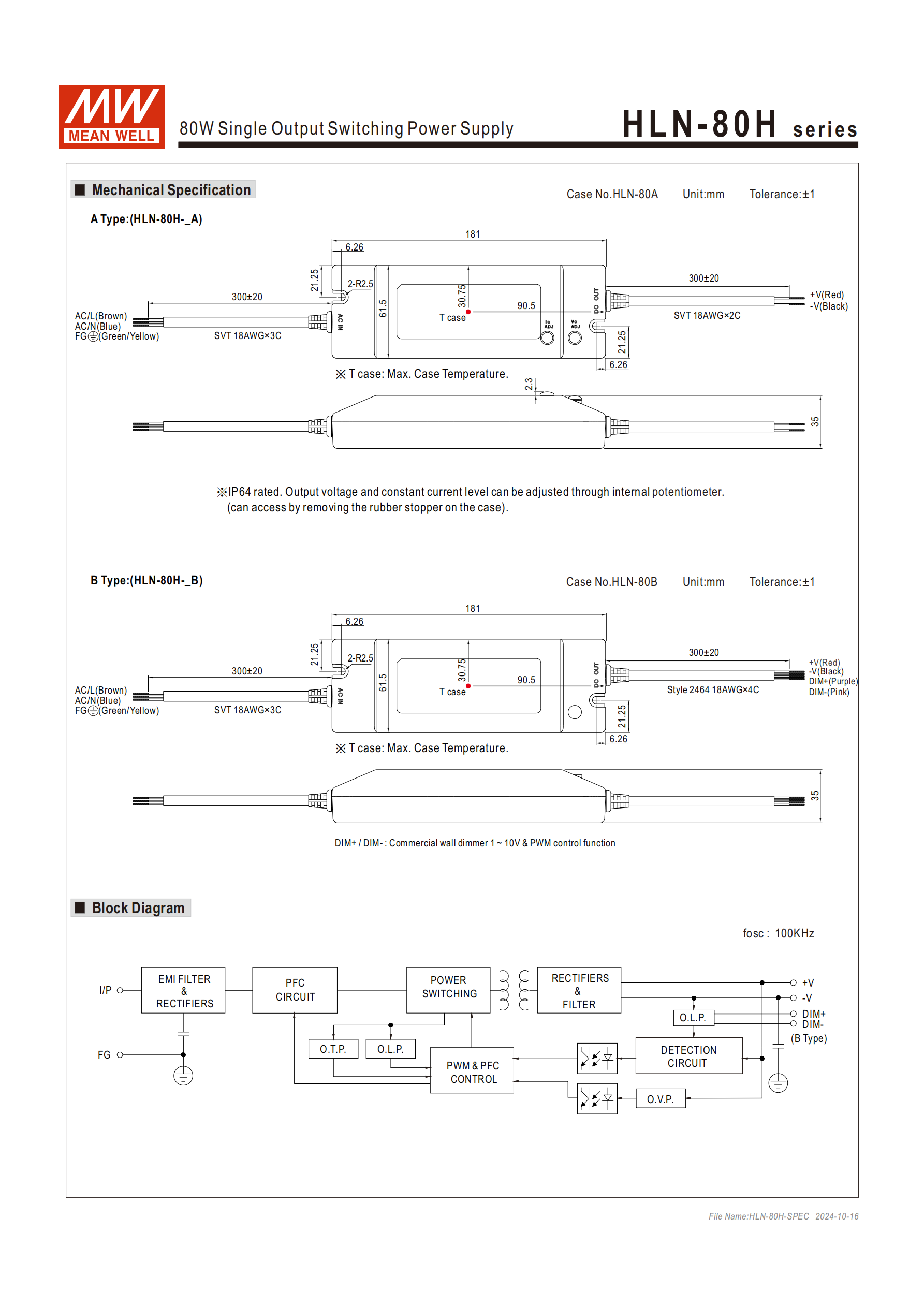 | HLN-80H-24 | 24 | 2.04~3.4 | 81.6 | 150 | ±1.0% | 90.5% |