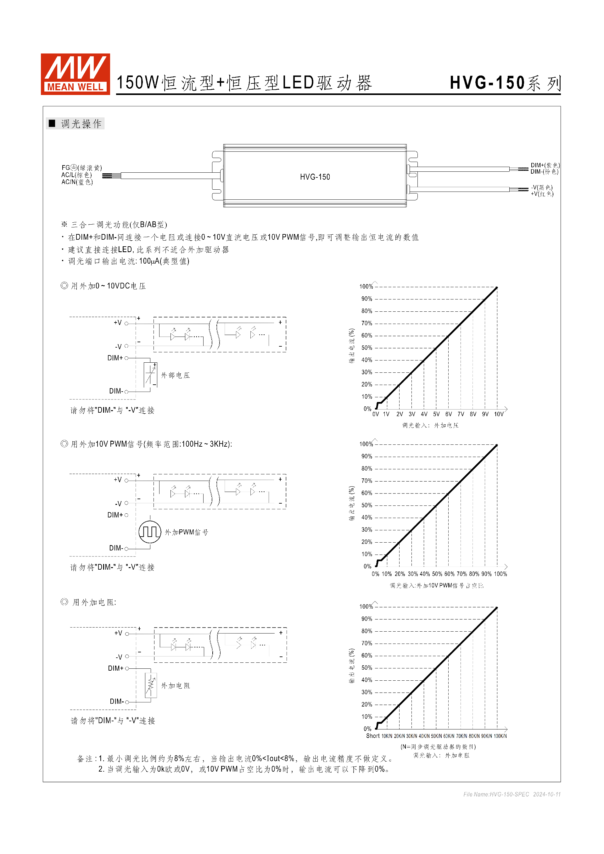 問題 1(產(chǎn)品功能與適配性):HVG-150 系列的調(diào)光功能有哪些類型,分別適用于哪些型號,調(diào)光的核心參數(shù)和注意事項(xiàng)是什么?