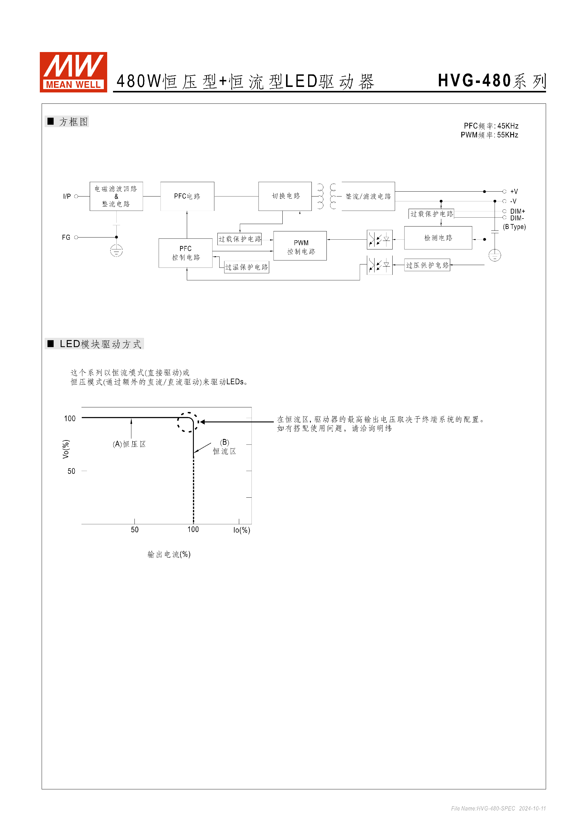 HVG-480 系列不同調(diào)光功能的適用機(jī)型和核心調(diào)光方式分別是什么?答案:①電位器調(diào)節(jié)恒流 / 恒壓:僅A/AB 型支持,通過機(jī)殼內(nèi)建電位器調(diào)整;②三合一調(diào)光:B/AB 型標(biāo)配,可通過 DIM+/- 端口接 0~10Vdc 直流電壓、10V PWM 信號(hào)(100Hz~3KHz)或外接電阻實(shí)現(xiàn),最小調(diào)光比例約 5%;③智能定時(shí)調(diào)光:Dx/D2 型支持,Dx 為客戶定制選購(gòu)品,D2 為標(biāo)準(zhǔn)品,核心是 14 小時(shí)內(nèi)自動(dòng)調(diào)節(jié)輸出電流,明緯提供 D01(住宅)、D02(街道)、D03(隧道)三款經(jīng)典模式。
