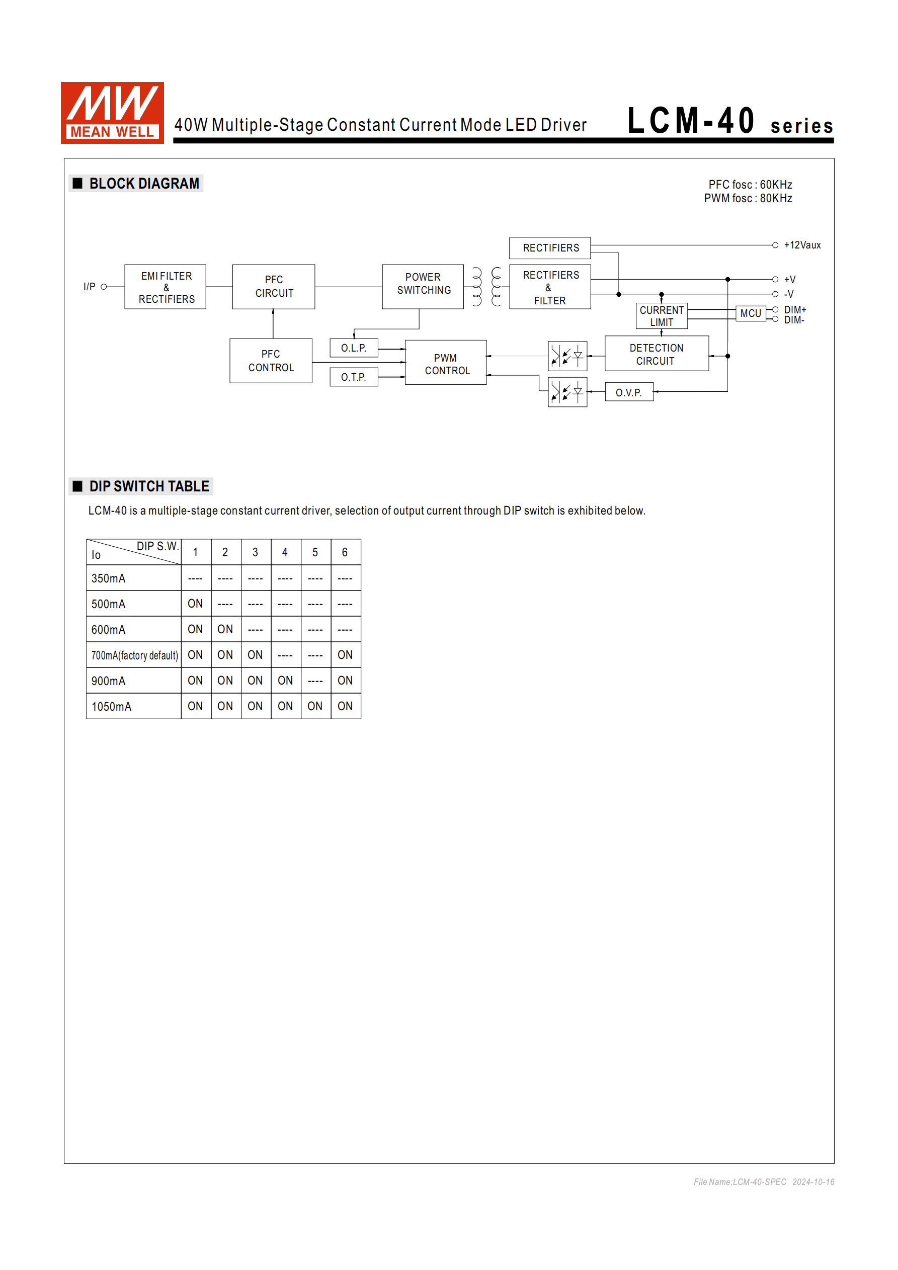 問題 1(功能配置類):LCM-40 系列如何調(diào)節(jié)輸出電流,各檔位對應(yīng)的 DIP 開關(guān)設(shè)置規(guī)則是什么?