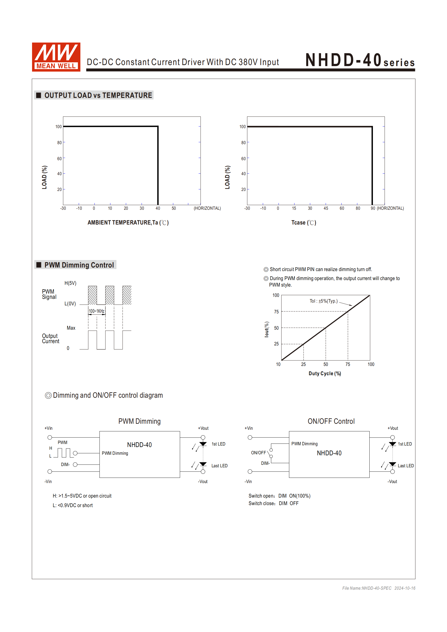 型號編碼:NHDD-40-100,無后綴為 Pin 針版型,W 后綴為線材版;100 代表輸出電流 100μA(實際為 100mA),40 為額定功率系列,NHDD 為系列名稱。