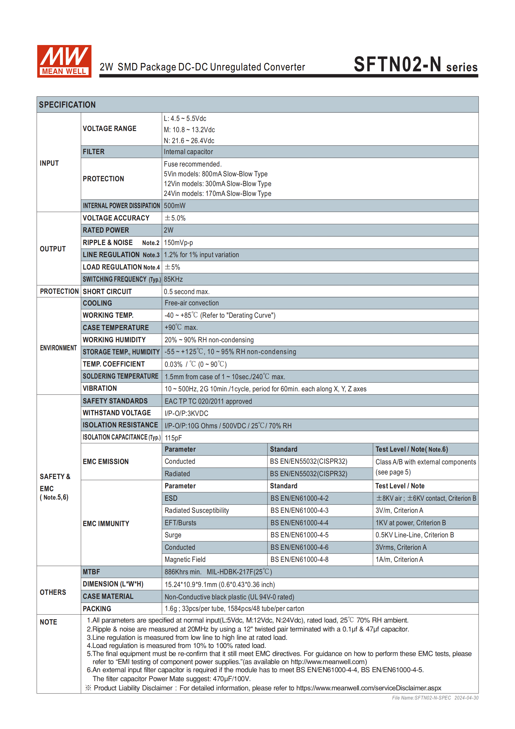 產(chǎn)品名稱:SFTN02-N 系列2W SMD 封裝 DC-DC 非穩(wěn)壓轉(zhuǎn)換器,為明緯新系列隔離型模塊電源