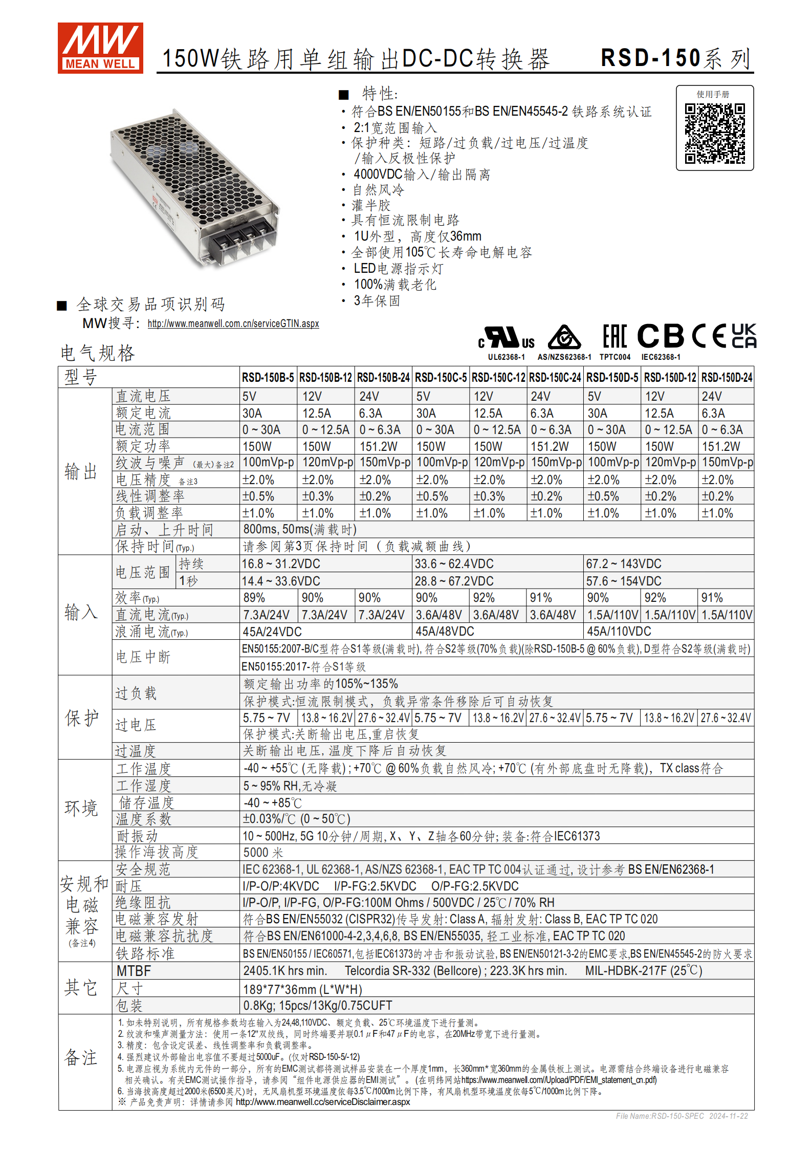 RSD-150 系列完整型號及核心參數(shù)