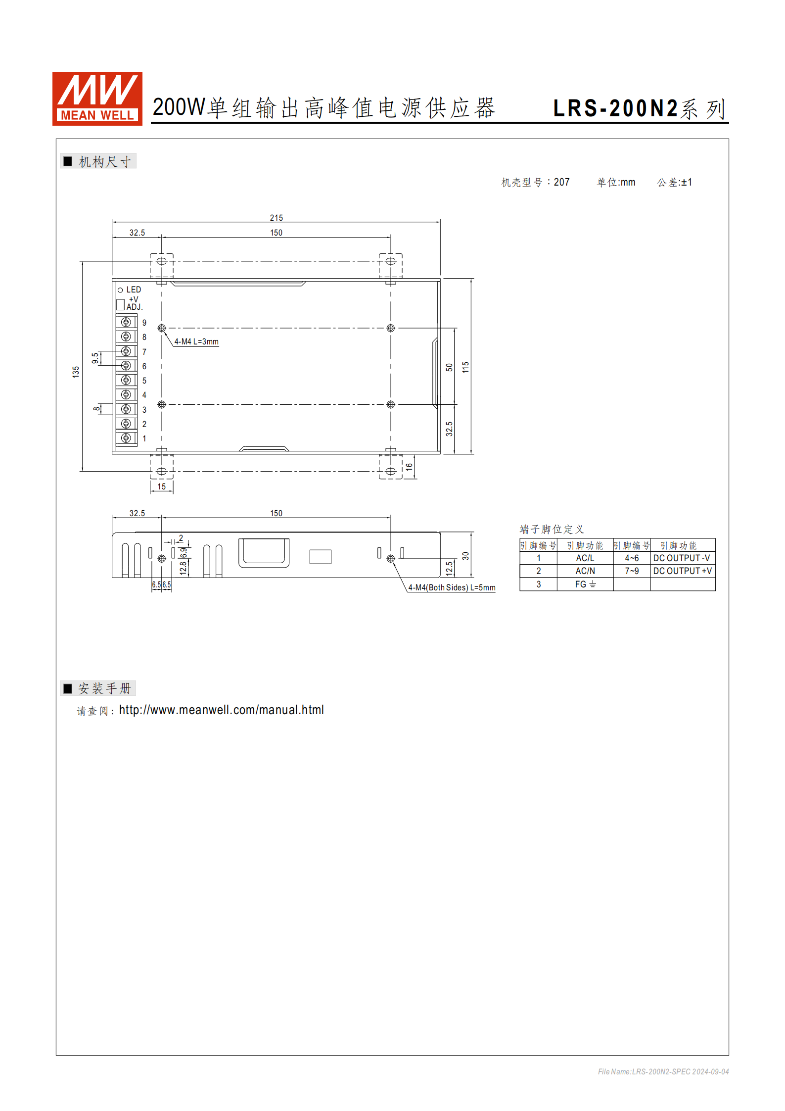 品牌型號:MEAN WELL(明緯)LRS-200N2 系列