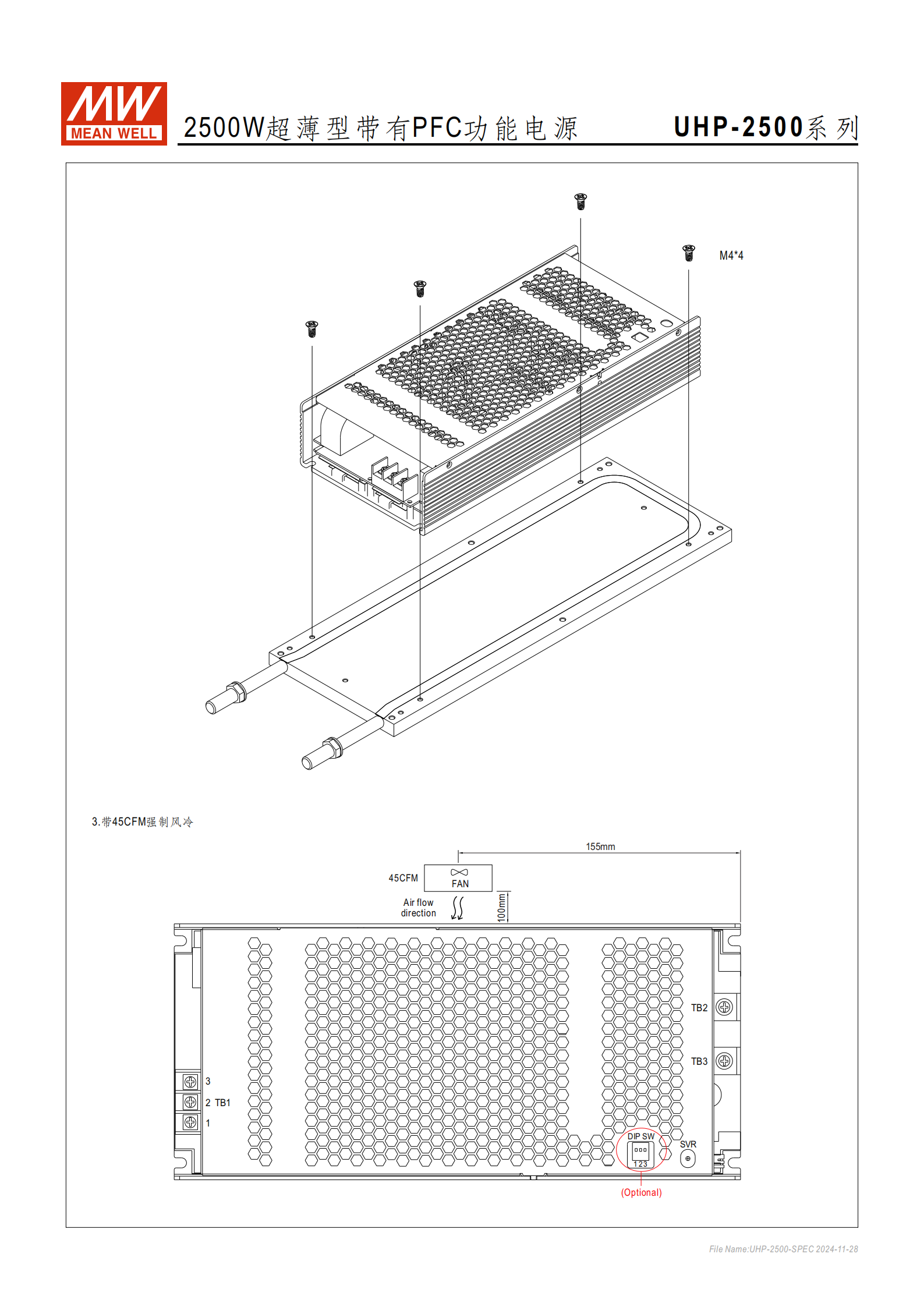 UHP-2500 系列是2500W 超薄型開關(guān)電源,核心亮點為集成 PFC(功率因數(shù)校正)功能,具備高效、穩(wěn)定、多功能調(diào)整特性,適用于對供電功率、精度及可靠性有較高要求的電子設(shè)備場景,支持多種散熱方式和遠(yuǎn)程控制,符合國際安全與電磁兼容標(biāo)準(zhǔn)。