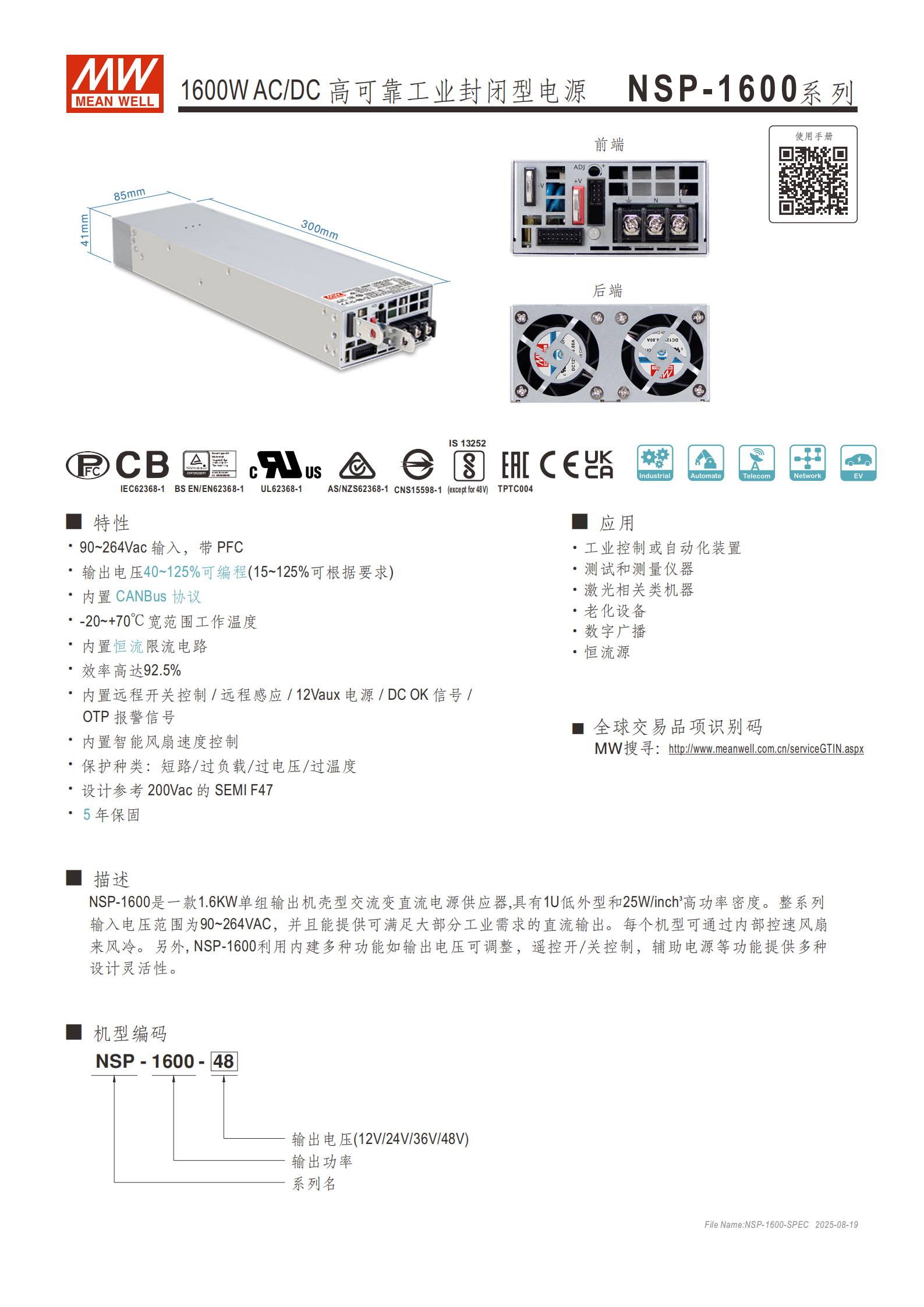 問題 2:NSP-1600 系列具備哪些核心保護(hù)功能和通訊 / 控制功能,適用于哪些工業(yè)場景?