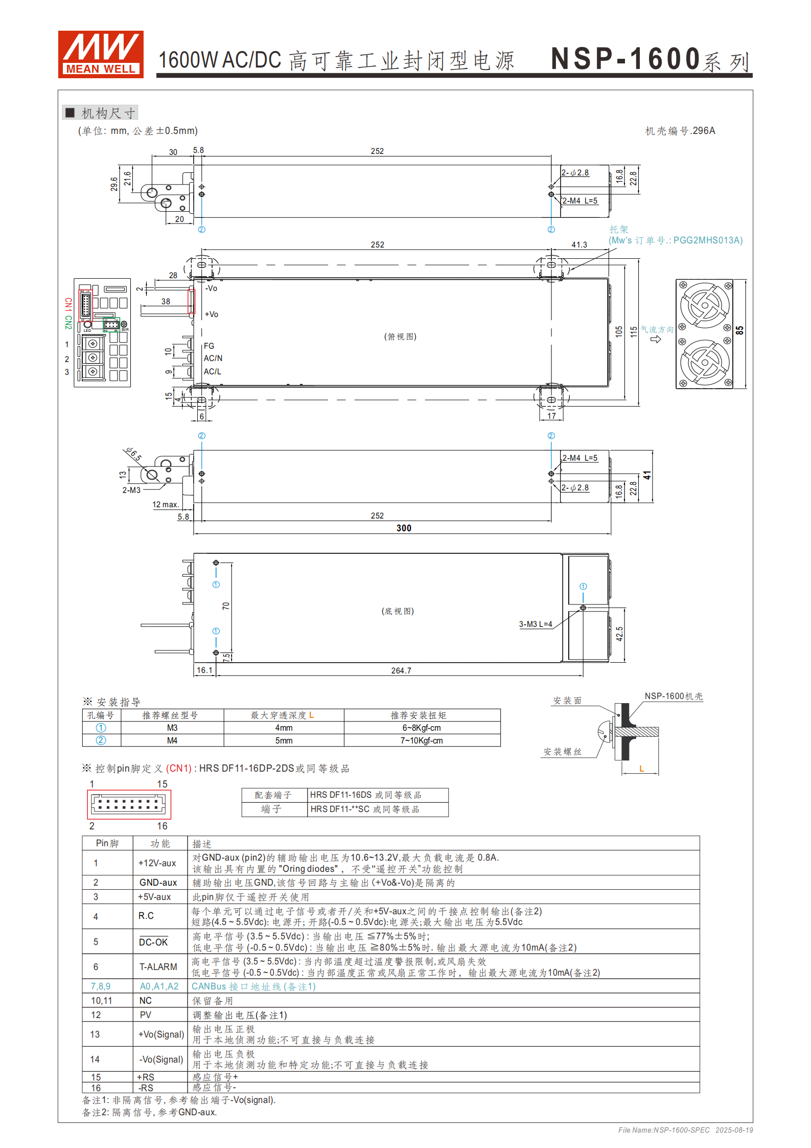 問(wèn)題 1:NSP-1600 系列電源的核心輸出規(guī)格(電壓、電流、效率)及調(diào)節(jié)范圍是什么?