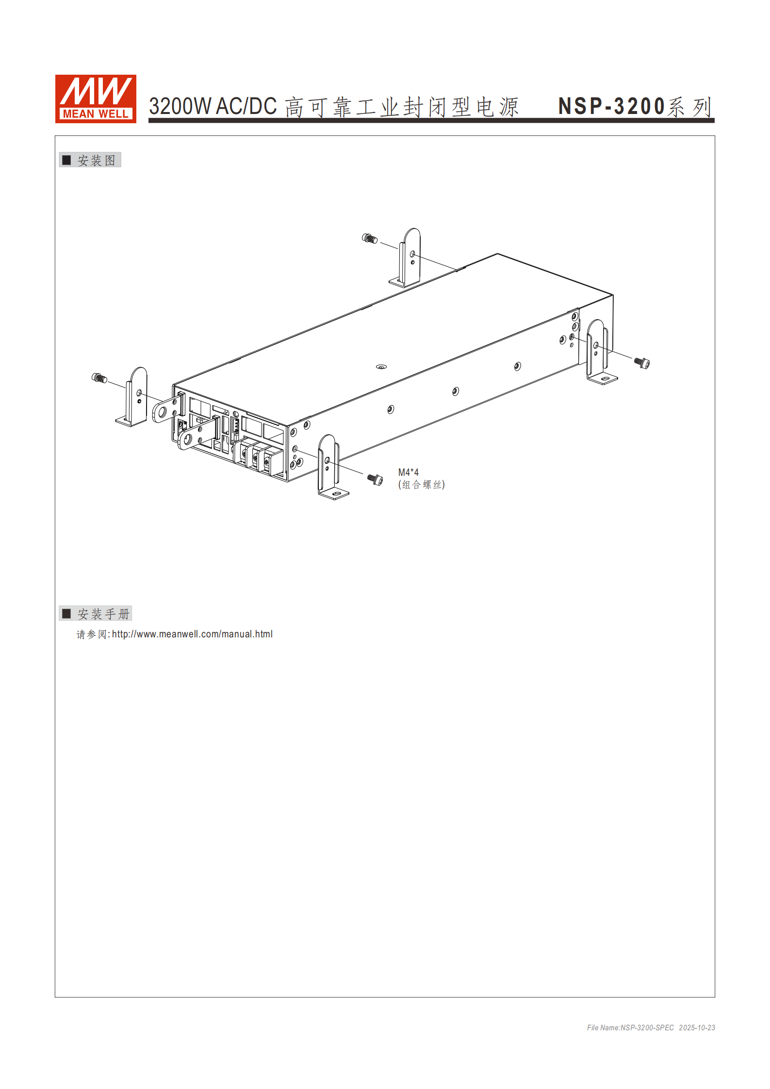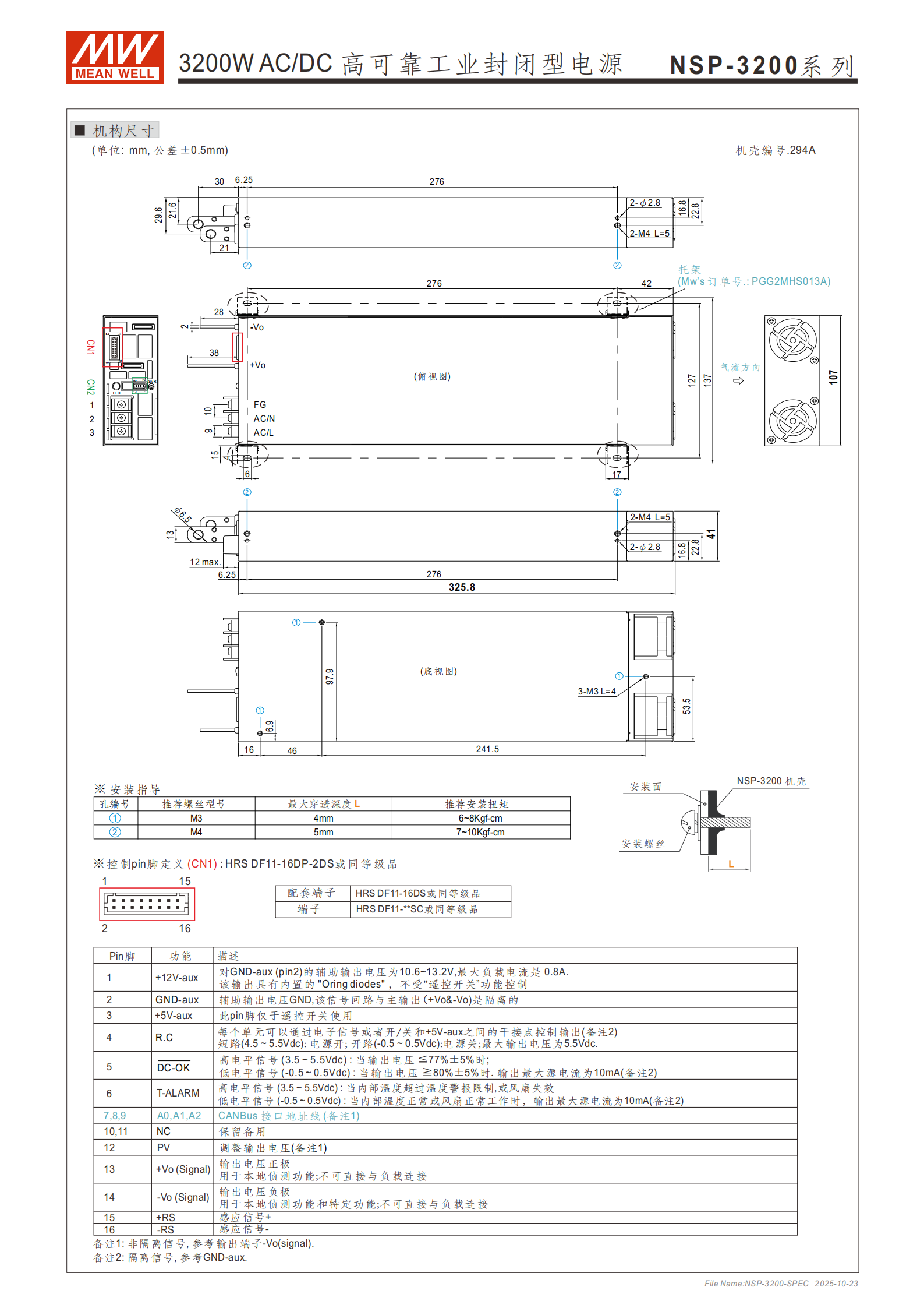 機(jī)型分類:| 機(jī)型 | 輸出電壓 | 額定電流 | 額定功率 | 電壓調(diào)整范圍 | 紋波噪聲(最大) ||------|----------|----------|----------|--------------|------------------|| NSP-3200-24 | 24V | 133A | 3192W | 23.5~30V | 300mVp-p || NSP-3200-48 | 48V | 67A | 3216W | 47.5~58.8V | 480mVp-p |