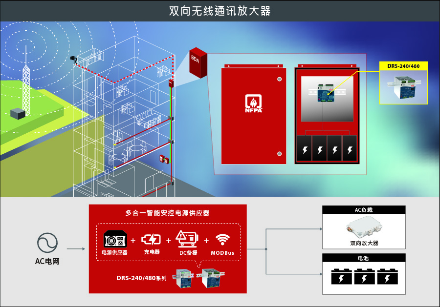 明緯自2000年投入導(dǎo)軌電源至今已擁有10~960W電源及相關(guān)配件模塊,產(chǎn)品線相當(dāng)完整并在導(dǎo)軌式標(biāo)準(zhǔn)電源市占已名列前茅。然而隨著城市化發(fā)展,小從一棟建筑,大到整座智慧城市,歐美中各國(guó)為了提高公共安全,分別制訂了安控消防系統(tǒng)安全規(guī)范(EN54-4/ UL2524/ GB17945),對(duì)此,明緯新推出了240W/480W多合一數(shù)字智能安控電源供應(yīng)器~DRS-240/ 480系列。