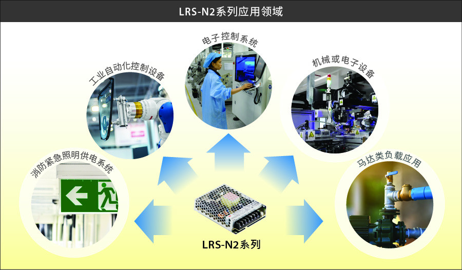 LRS-N2 系列除符合 UL/EN 62386-1 信息類認(rèn)證,亦符合工業(yè)電源類 EN 61558-1 OVC III 設(shè)計(jì)。整體來說,具 OVC III 設(shè)計(jì)的產(chǎn)品較適合工業(yè)設(shè)備使用,可直接從配電箱接線并節(jié)省需額外透過一級(jí)隔離變壓器的使用成本。此系列符合信息類及工業(yè)電源雙認(rèn)證可協(xié)助客戶縮短認(rèn)證申請(qǐng),可搭配各種電子設(shè)備或機(jī)械設(shè)備使用,如機(jī)械手臂、馬達(dá)類負(fù)載、咖啡機(jī)、消防緊急照明供電系統(tǒng)等。若您有設(shè)備需求具備 200% 瞬間峰值功率的應(yīng)用方式,可選用 LRS-N2 系列產(chǎn)品或請(qǐng)與明緯業(yè)務(wù)團(tuán)隊(duì)做聯(lián)系。