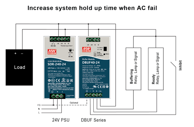 明緯推出的DBUF系列,搭載緩沖動(dòng)作訊號(hào)。當(dāng)輸入電壓失效,導(dǎo)致輸出電壓不足緩沖模組開始動(dòng)作時(shí),DBUF緩沖模組內(nèi)建的繼電器將會(huì)啟動(dòng),可供使用者做微系統(tǒng)進(jìn)行資料儲(chǔ)存的偵測(cè)的依據(jù),借此達(dá)到資料的即刻救援,解決使用者對(duì)于設(shè)備可靠度的需求。