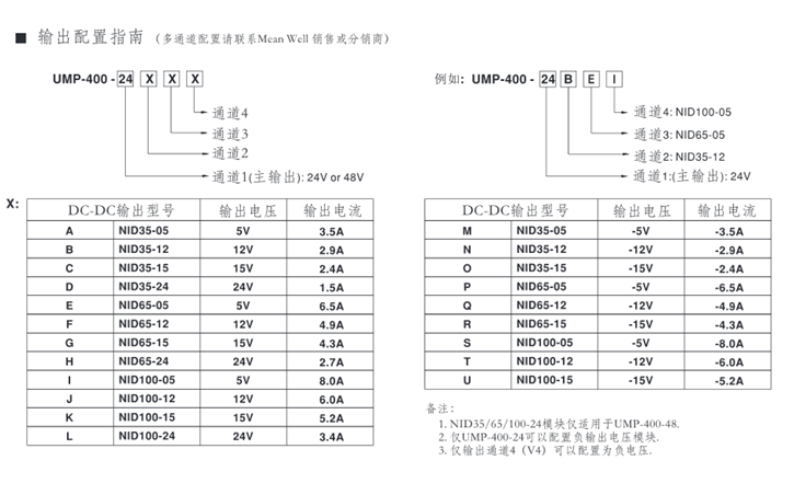 如下圖2,1臺(tái)UMP-400-48搭配1臺(tái)NID100-15,1臺(tái)NID100-12共3組輸出。