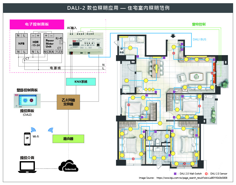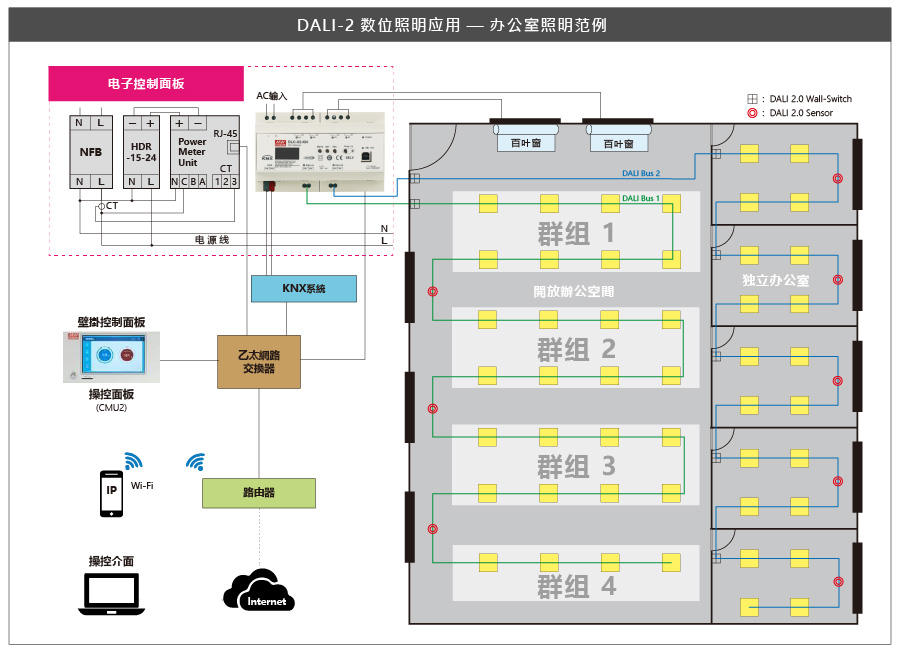 隨著5G及智能居家產(chǎn)品的發(fā)展趨勢(shì),數(shù)字照明系統(tǒng)及樓宇自動(dòng)化的應(yīng)用,越來越受到關(guān)注。如何有效整合大樓或智能居家所有的照明系統(tǒng),同時(shí)結(jié)合樓宇自動(dòng)化的控制,將是未來發(fā)展的趨勢(shì)??缛?B.A)樓宇自動(dòng)化系統(tǒng),明緯除了提供KNX樓宇自動(dòng)化系統(tǒng)相關(guān)產(chǎn)品之外,我們正式推出符合DALI-2規(guī)范,數(shù)字控制的照明系統(tǒng)DLC-02控制器;以及可有效整合進(jìn)KNX樓宇自動(dòng)化系統(tǒng)(KNX轉(zhuǎn)DALI Gateway)的產(chǎn)品— DLC-02-KN,用戶可依場(chǎng)域規(guī)模,選擇合適的產(chǎn)品做搭配。